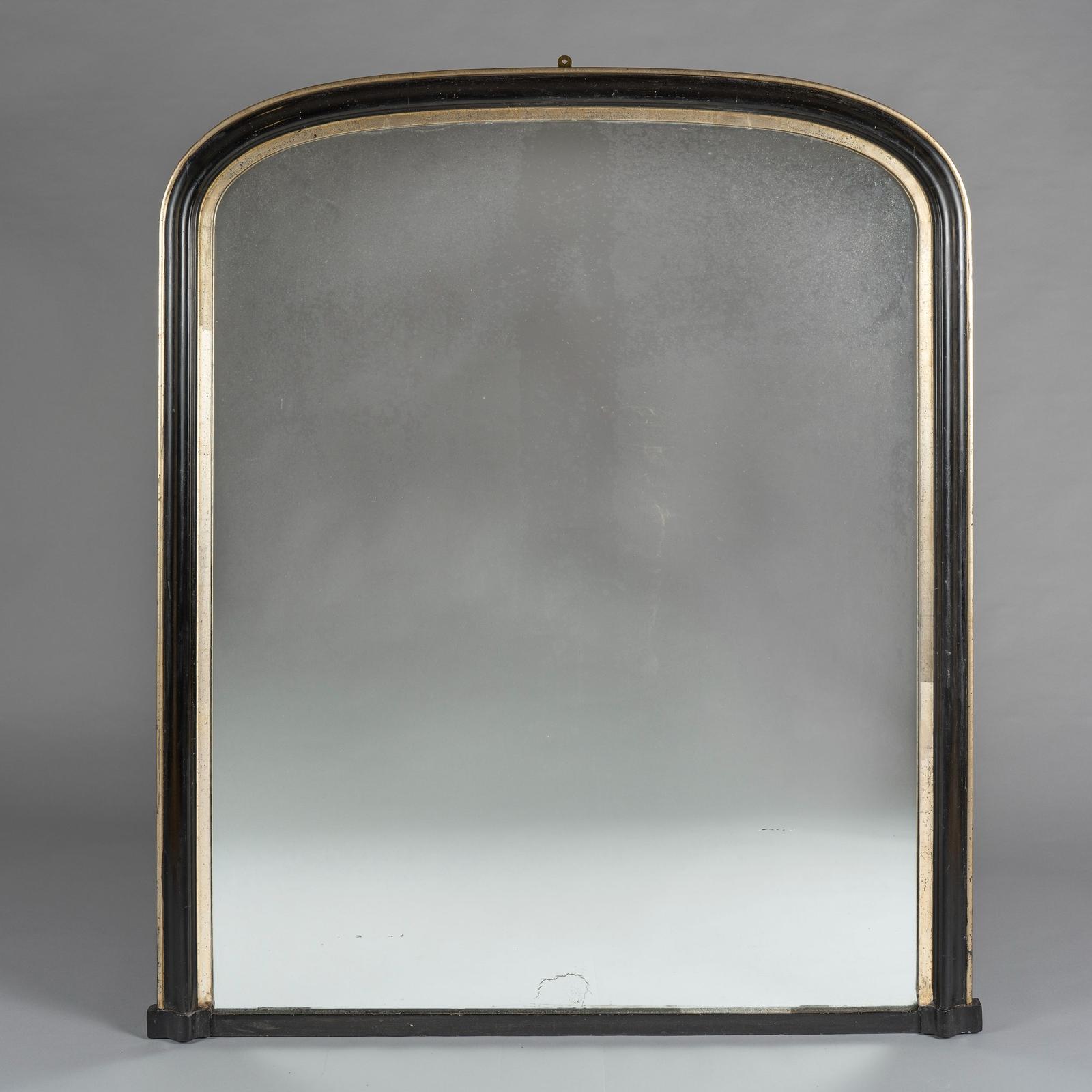 Large 19th Century English Ebonised & Silvered Gilt Overmantle Mirror