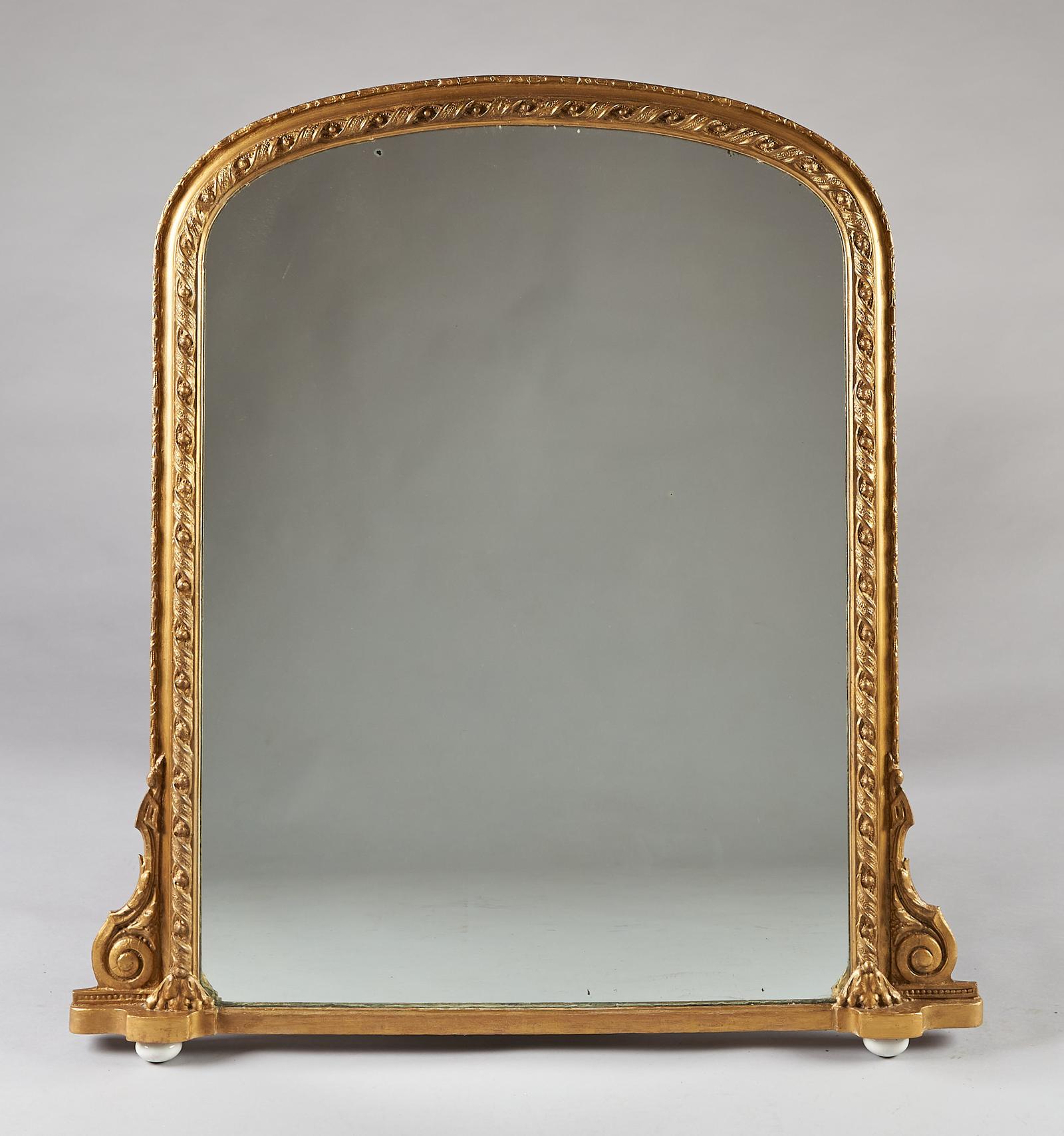 Large 19th Century English Victorian Gilt Archtop Overmantle Mirror