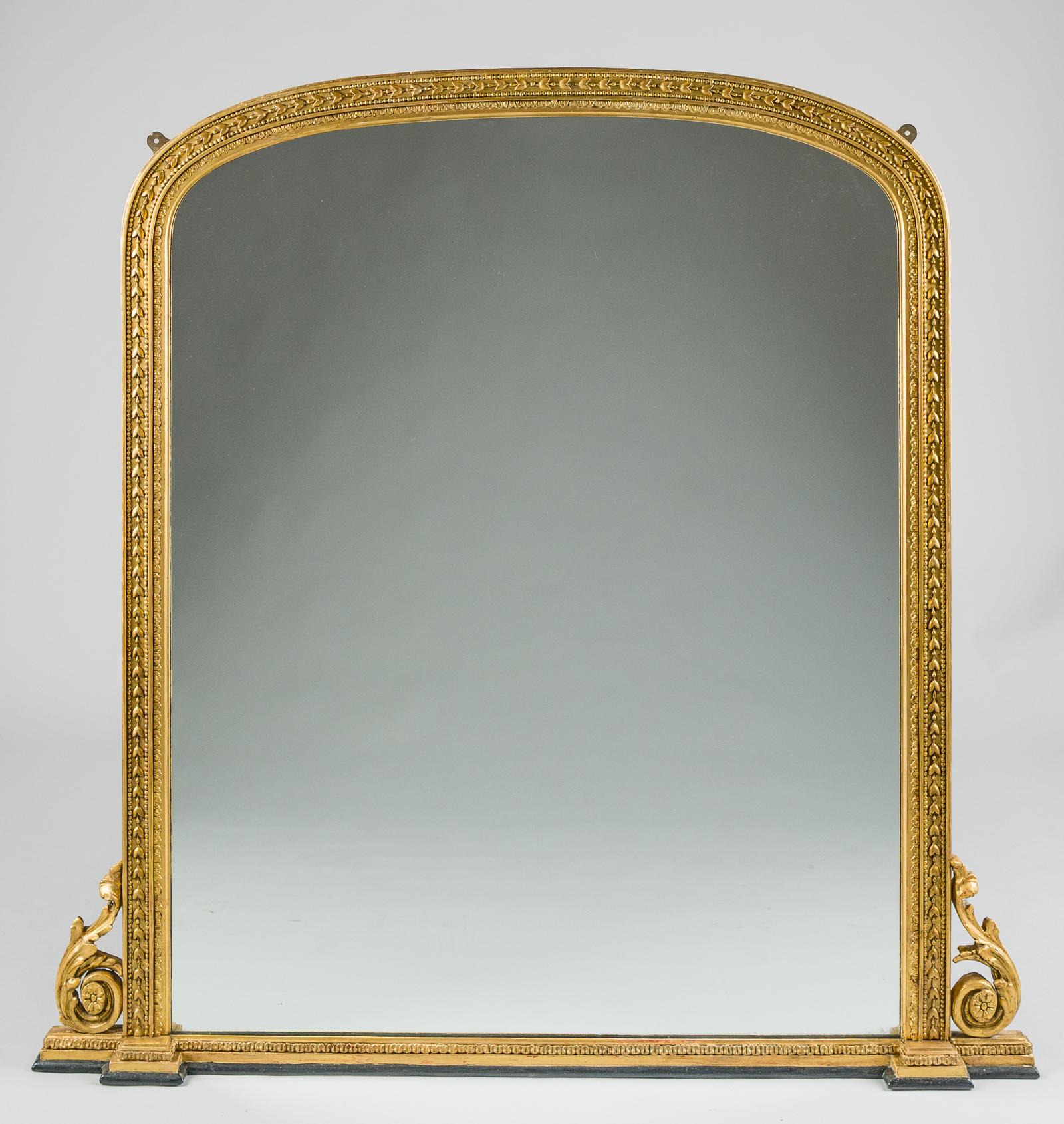 Large 19th Century English Victorian Gilt Archtop Overmantle Mirror