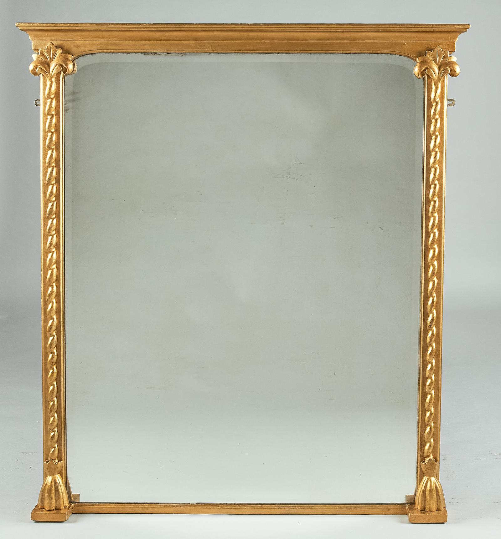 Large 19th Century English Victorian Gilt Overmantle Mirror