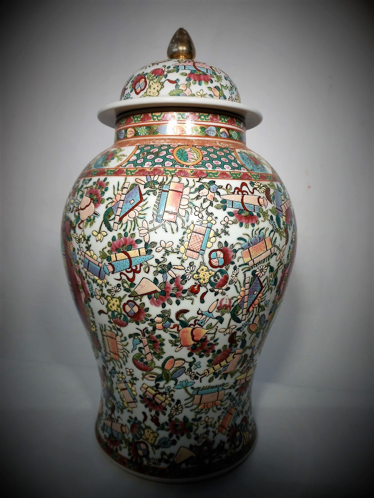 Large 19th Century Famille Rose Canton Porcelain Vase & Cover