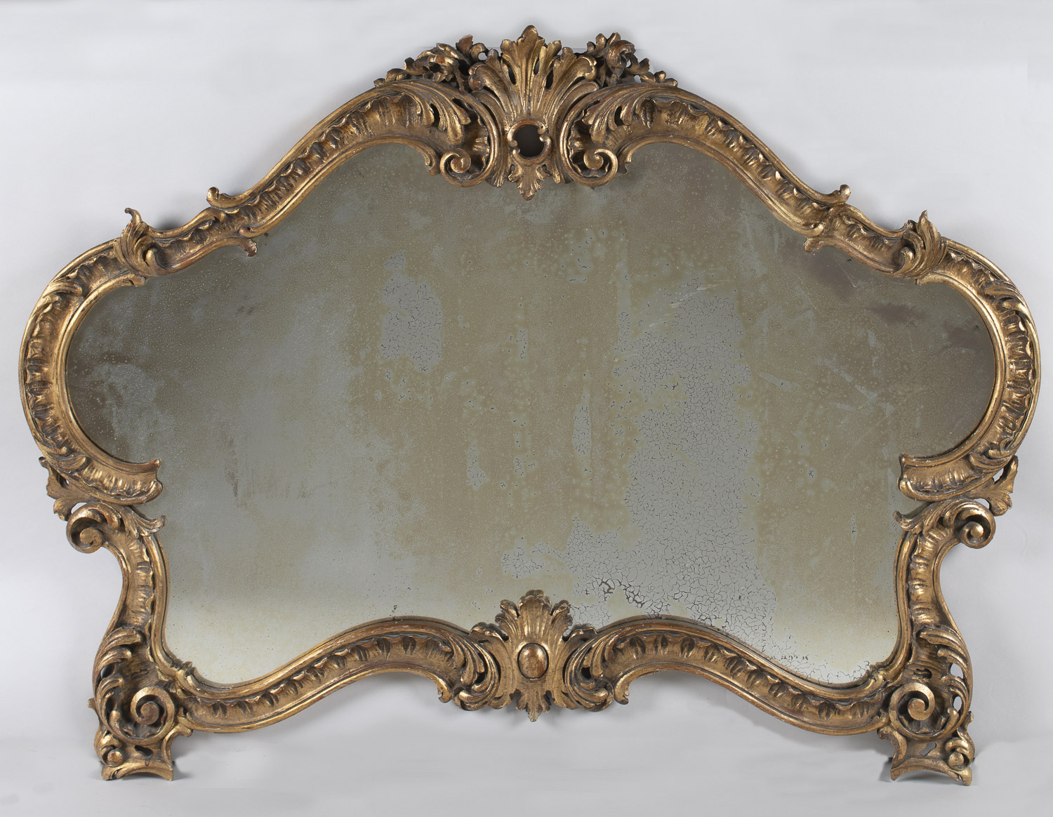 Large 19th Century French Carved Wood Gilt Overmantle Mirror