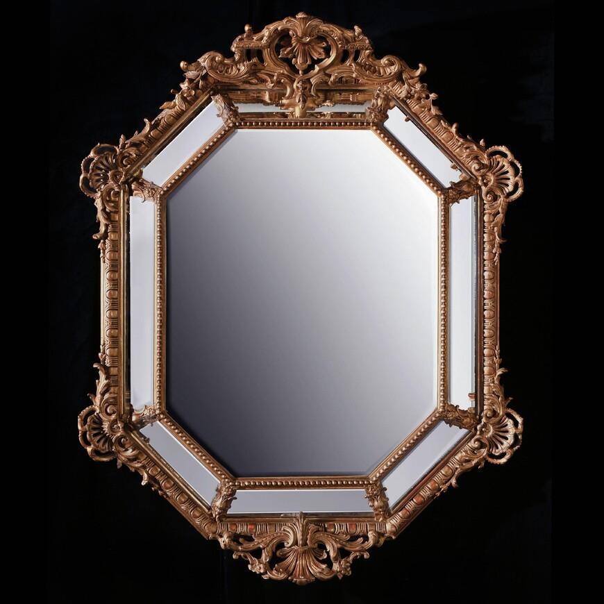 Large 19th Century French Octagonal Gilt Cushion Mirror