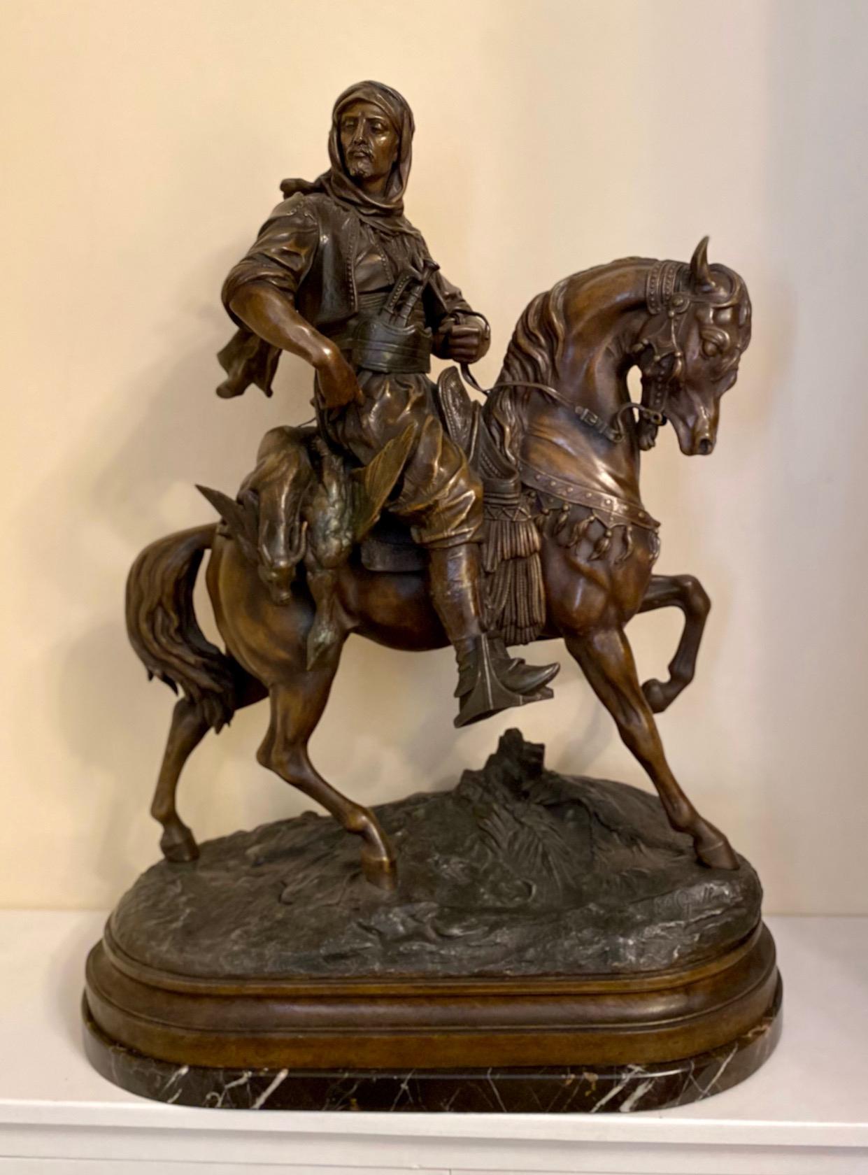 Large 19th Century French Patinated Spelter of 'Cavalier Arabe'