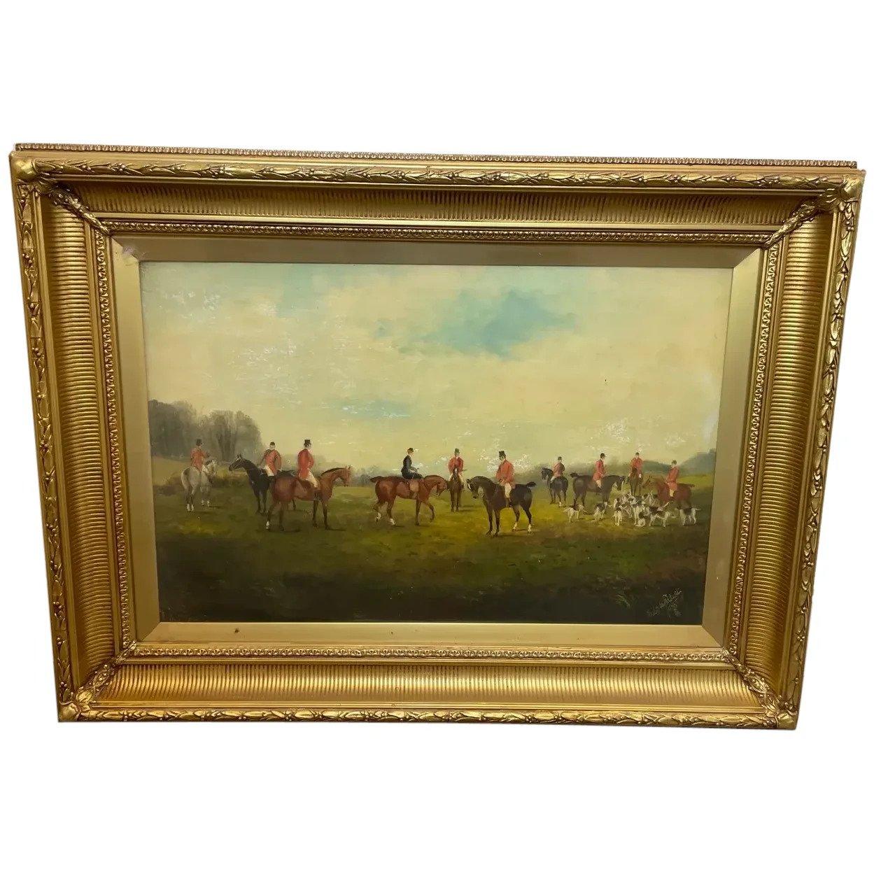 Large 19th Century Hunting Red Coats & Hounds Painting by Philip H Rideout