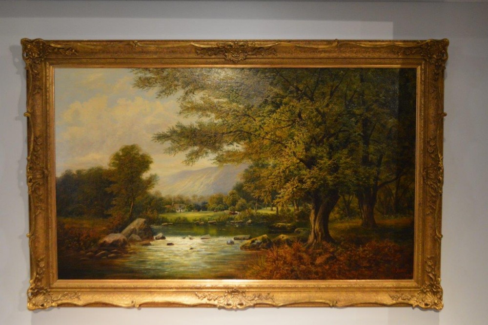 Large 19th Century Landscape Oil Painting of 'River with Cattle' By Artist Arthur Herbert Buckland / 56 x 36 Inches