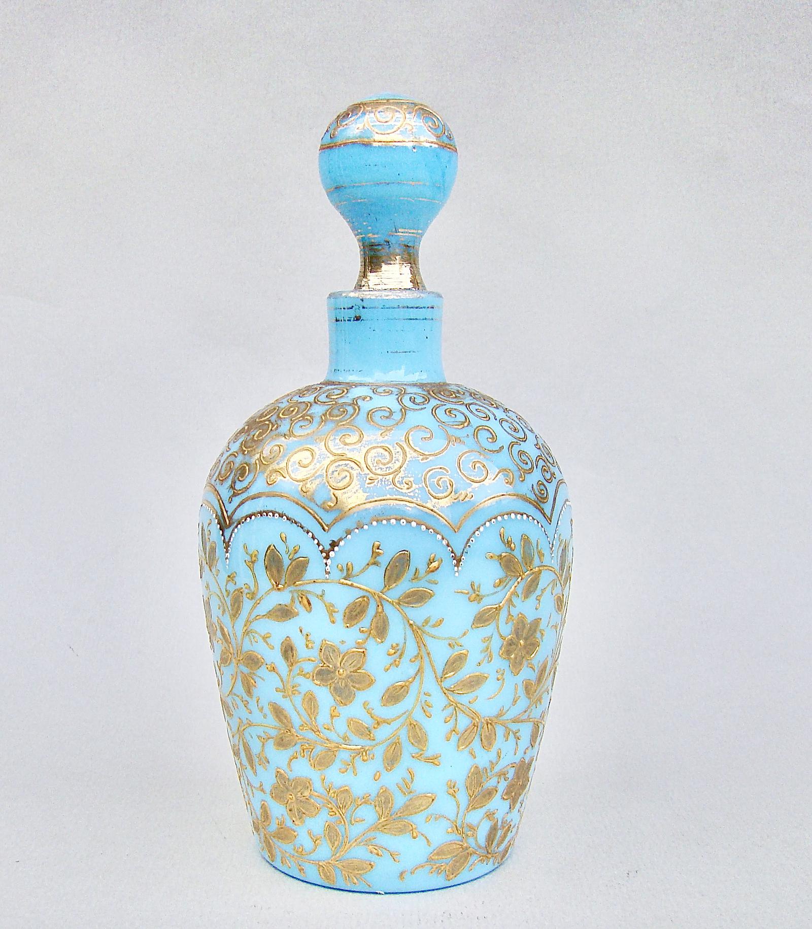 Large 19th Century Moser Turquoise Opaline & Gilt Glass Scent Bottle c.1890