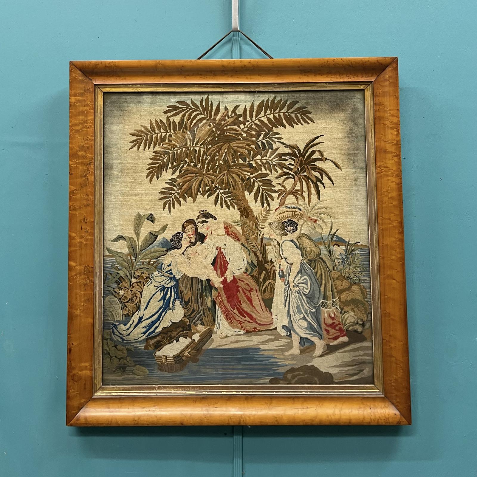 Large 19th Century Needlepoint Tapestry in Birds Eye Maple