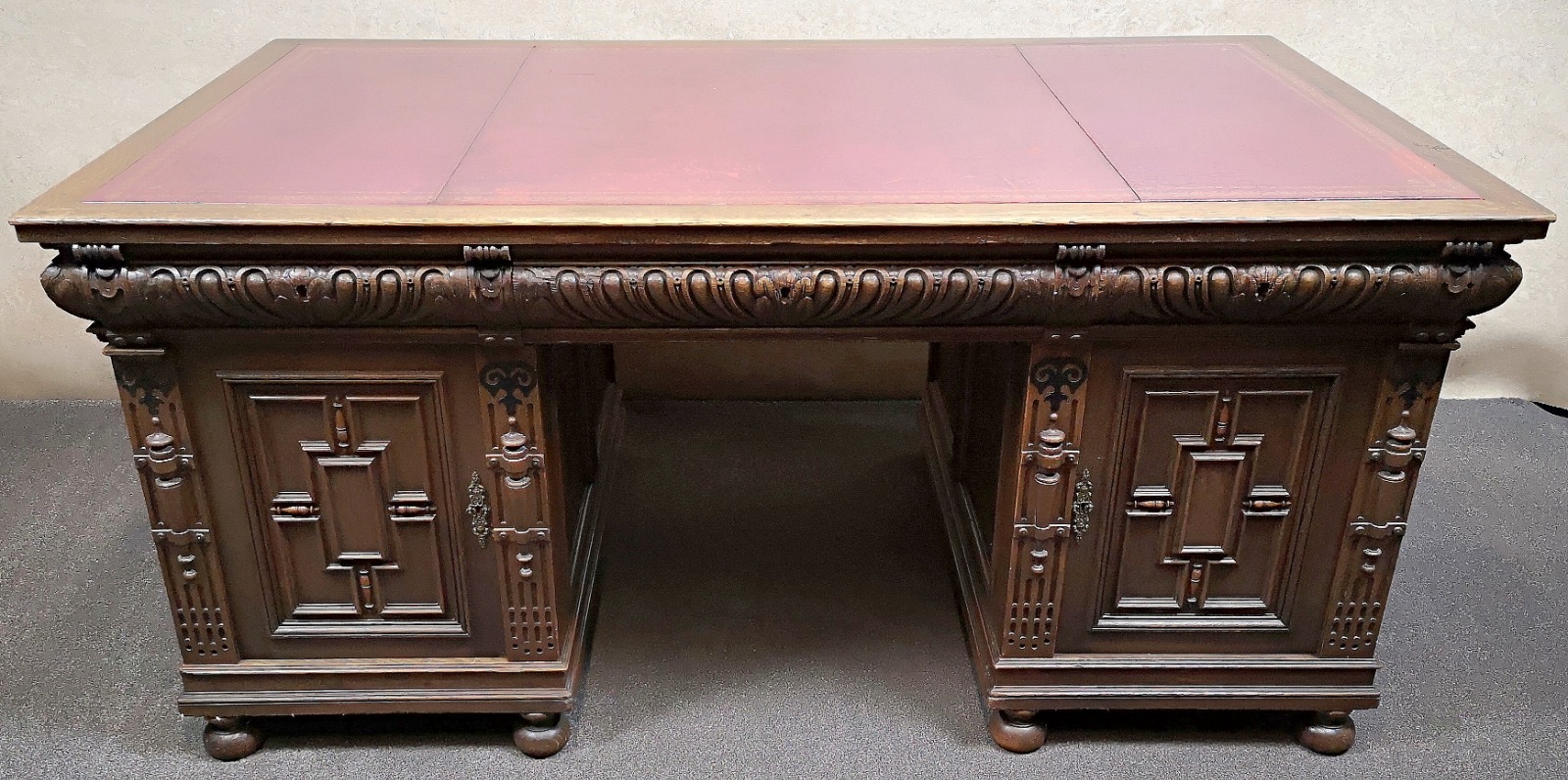 Large 19th Century Oak Twin Pedestal Desk (1 of 1)