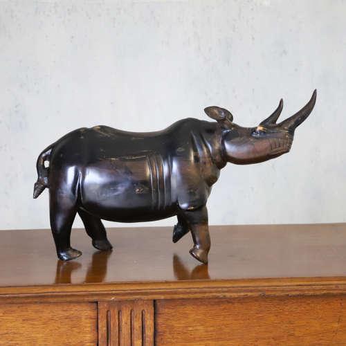 Large 19th Century Rhino Hand Carved from Solid Ebony