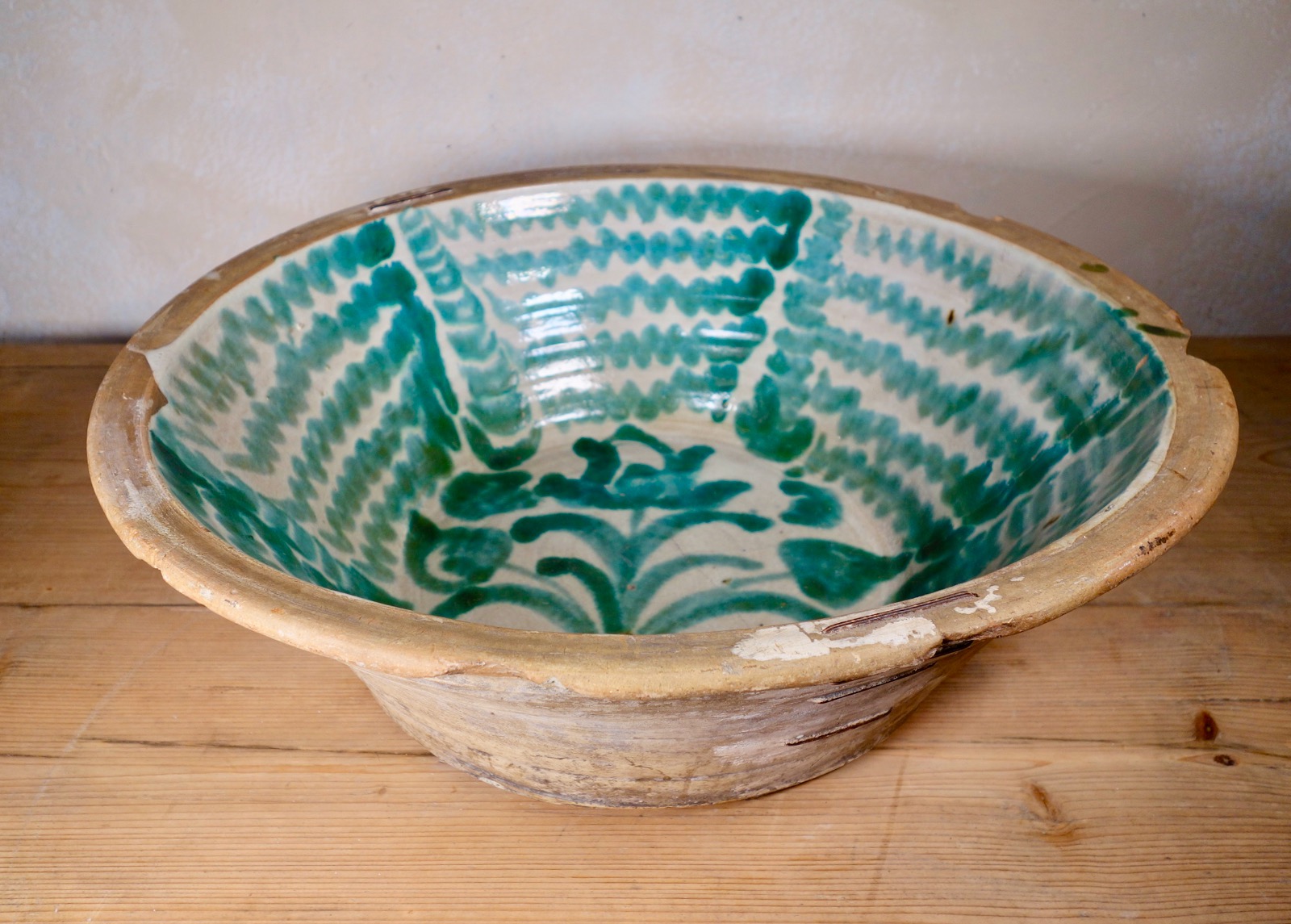 Large 19th Century Spanish Dairy Bowl Granada Lebrillo