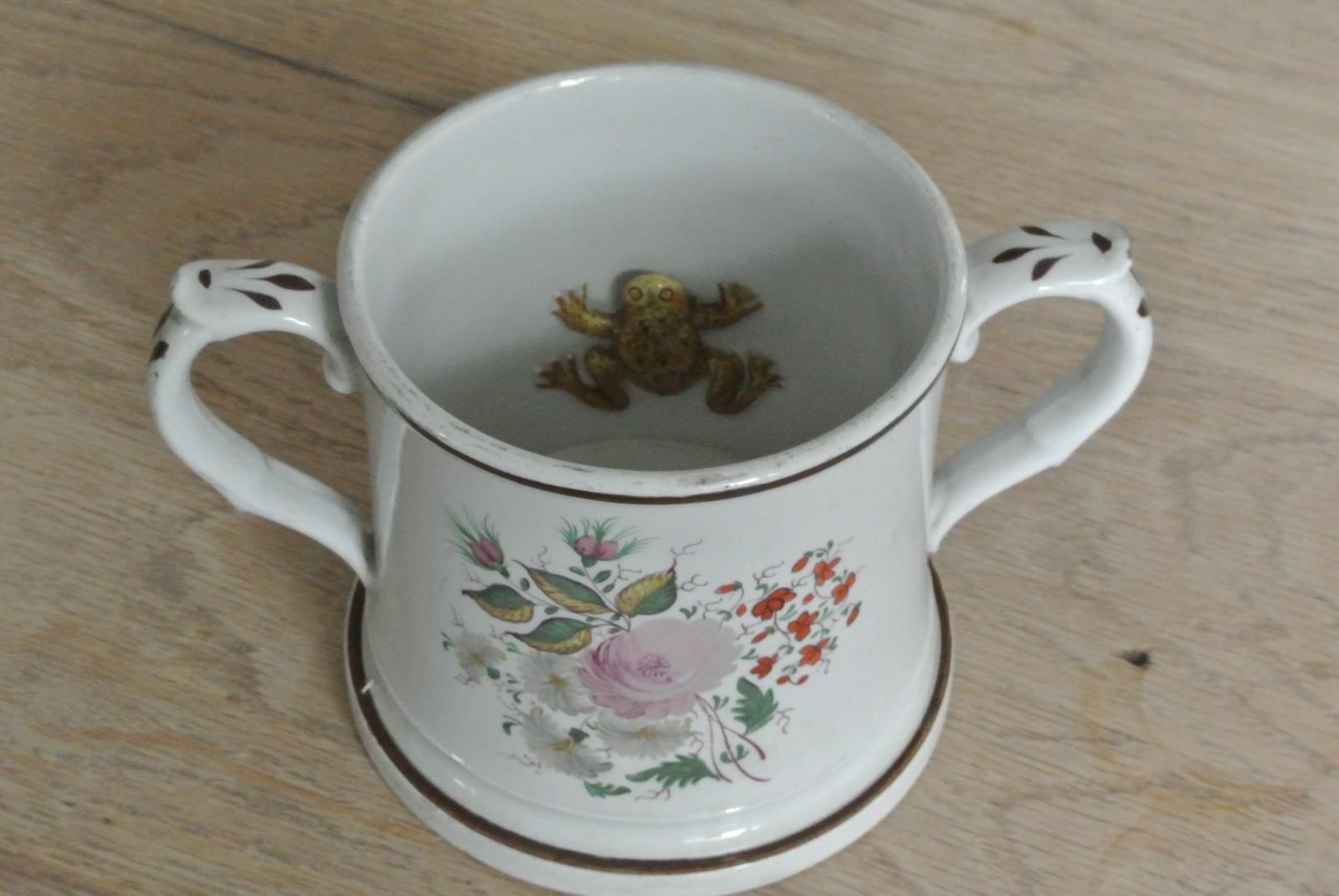 Large 19th Century Staffordshire Twin Handled Frog Mug with 3 Frogs Inside