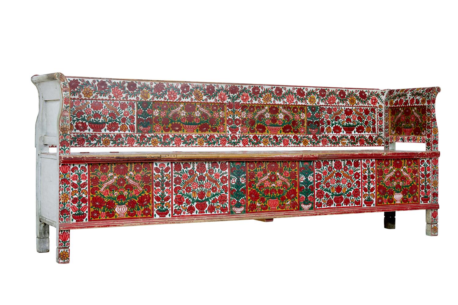 Large 19th Century Traditional Painted Swedish Bench (1 of 1)
