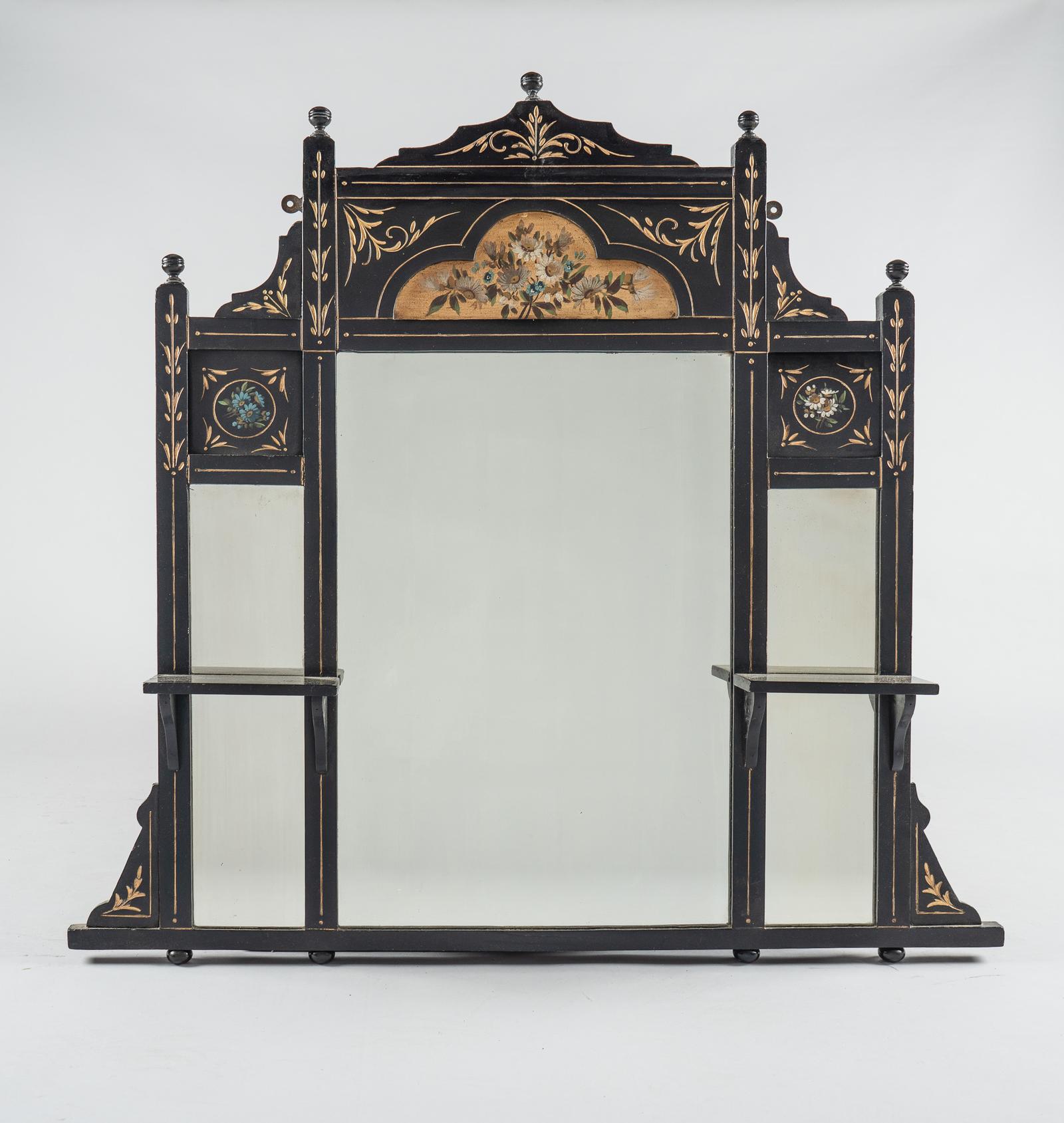 Large 19th Century Victorian English Ebonised Painted & Gilt Overmantle Mirror