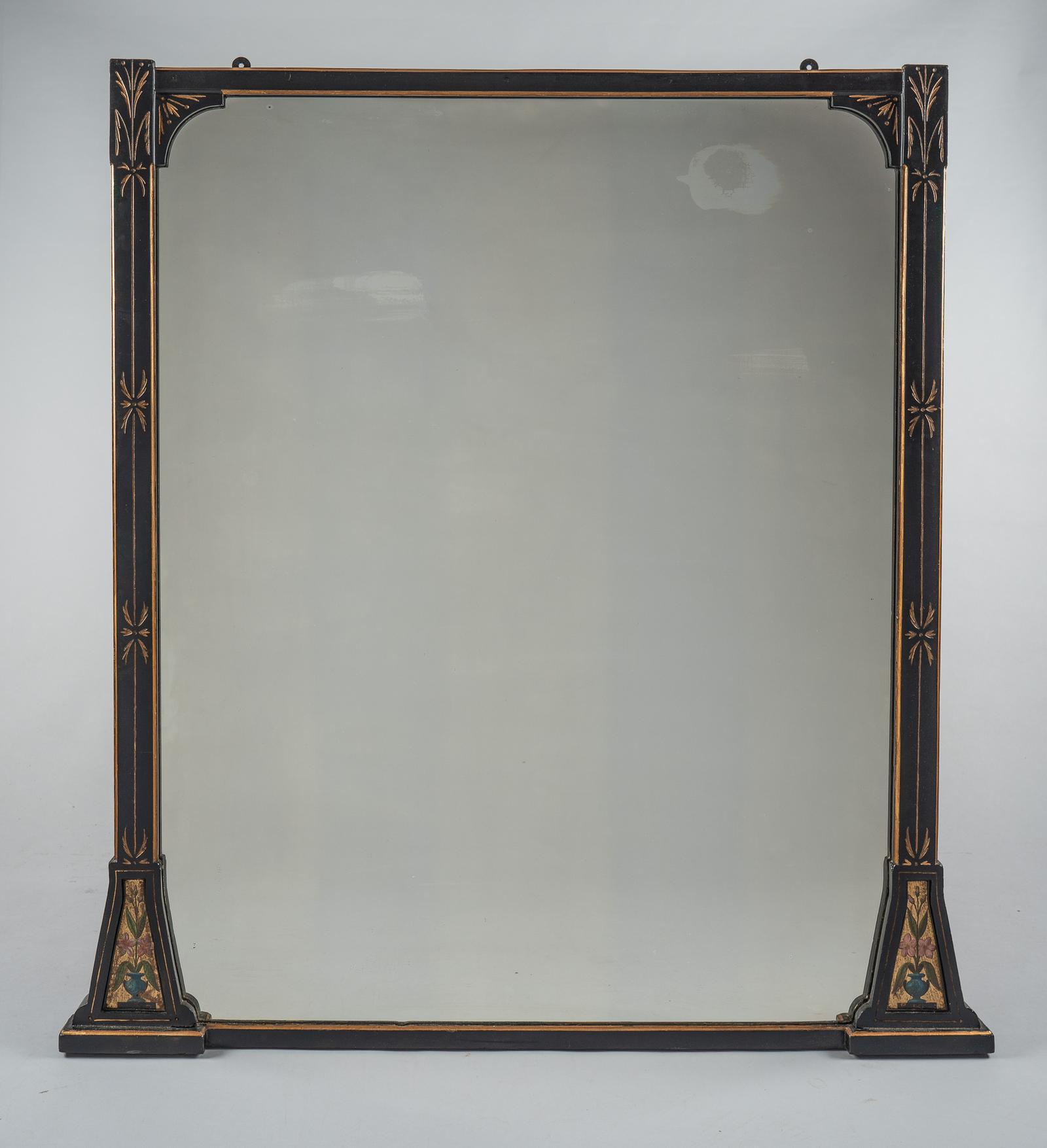 Large 19th Century Victorian English Ebonised & Parcel Gilt Overmantle Mirror