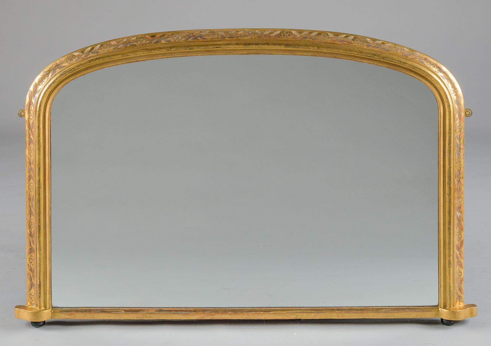 Large 19th Century Victorian English Gilt Archtop Overmantle Mirror