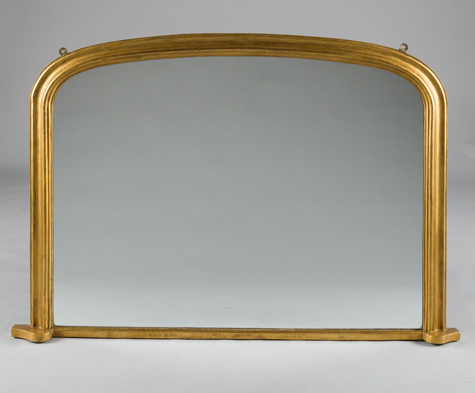 Large 19th Century Victorian English Gilt Archtop Overmantle Mirror