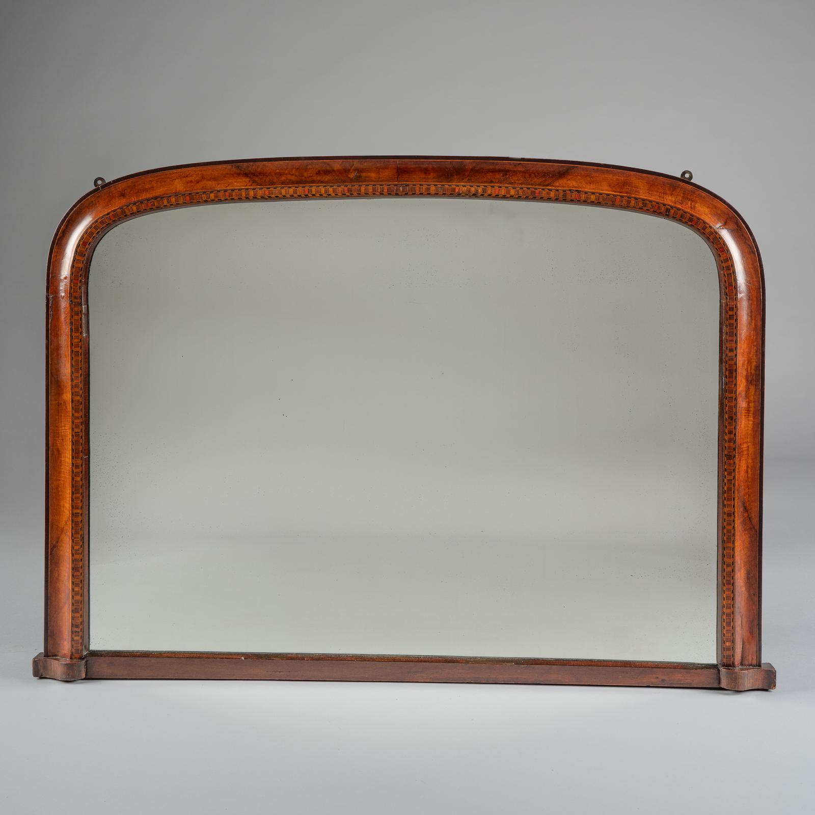 Large 19th Century Victorian English Walnut & Marquetry Overmantle Mirror