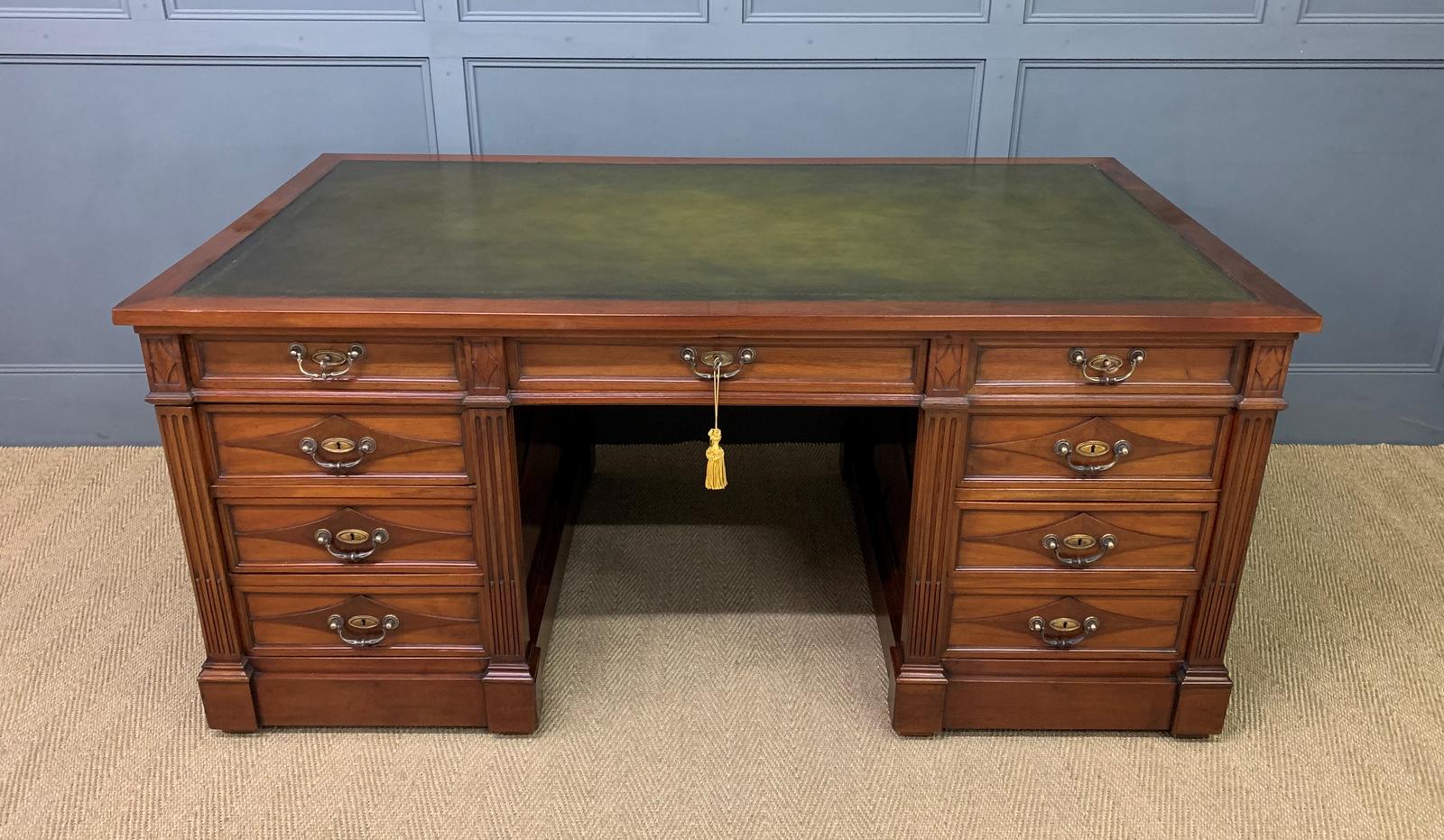 Large 19th Century Walnut Pedestal Desk (1 of 23)