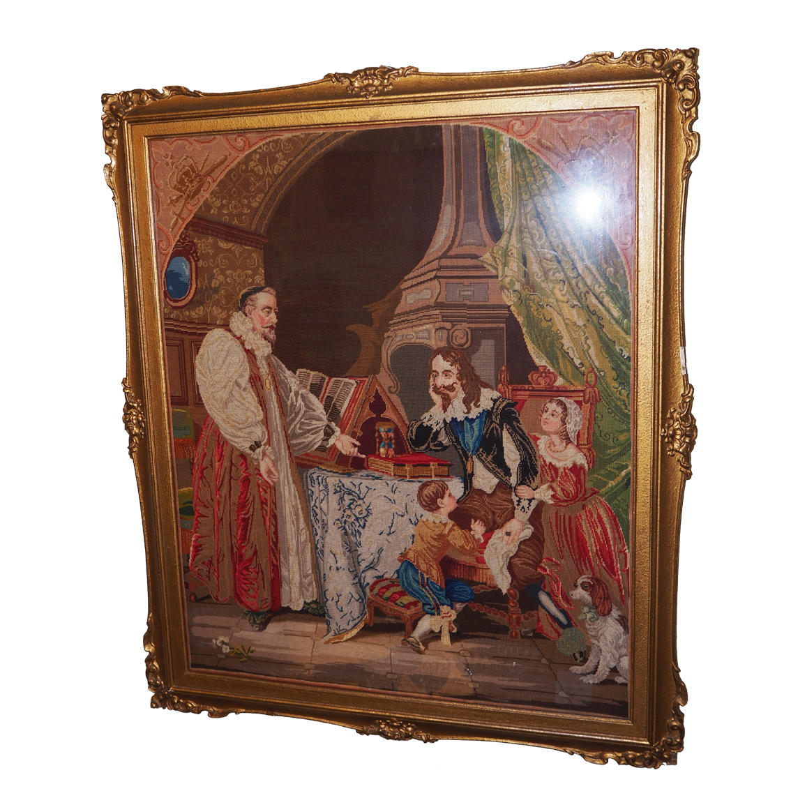 Large 19th Framed Needlework of Charles I (1 of 5)