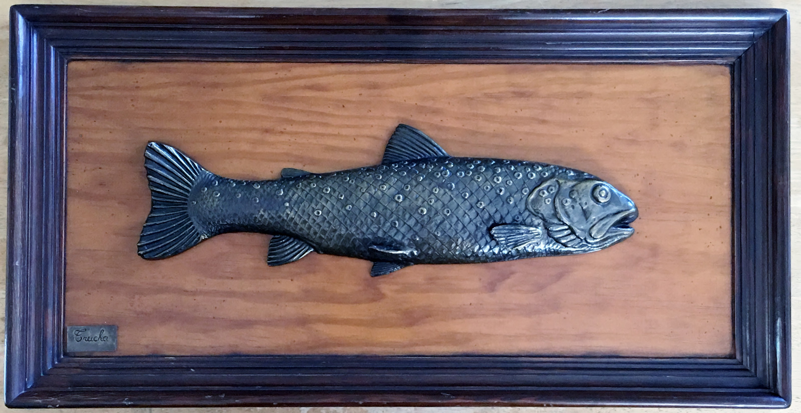 Large 20th Century Decorative Spanish ‘Wv Valenti’ Framed Bronze Fish