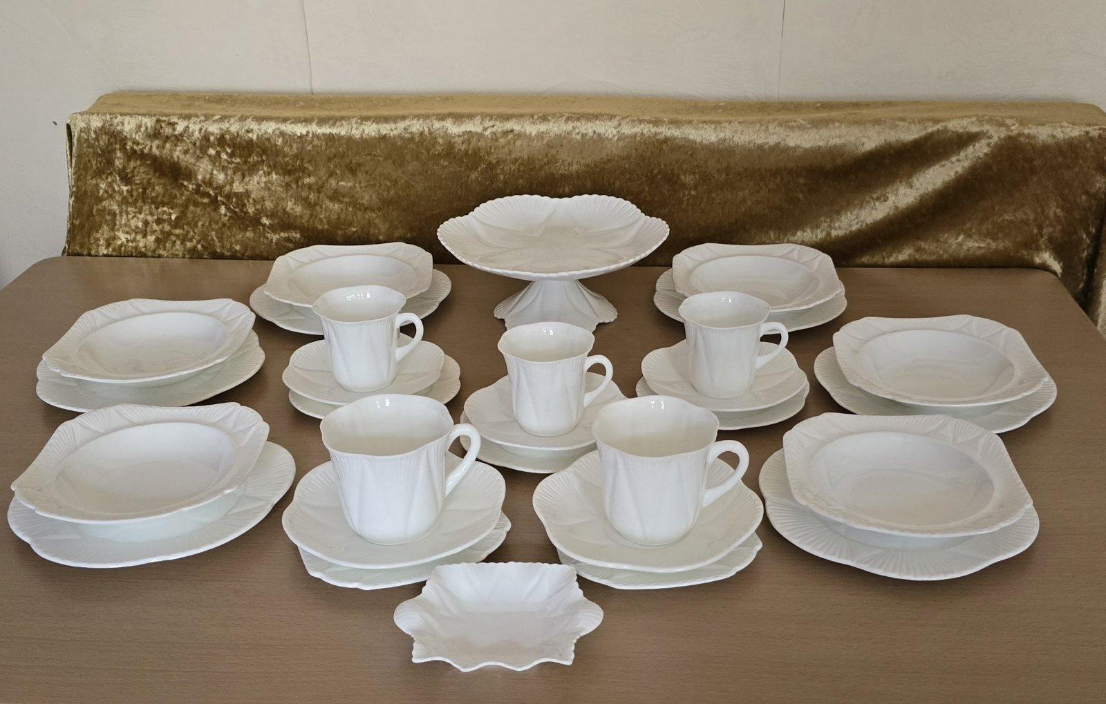 Large 31 Piece Shelley White Dainty Tea & Dinner Set