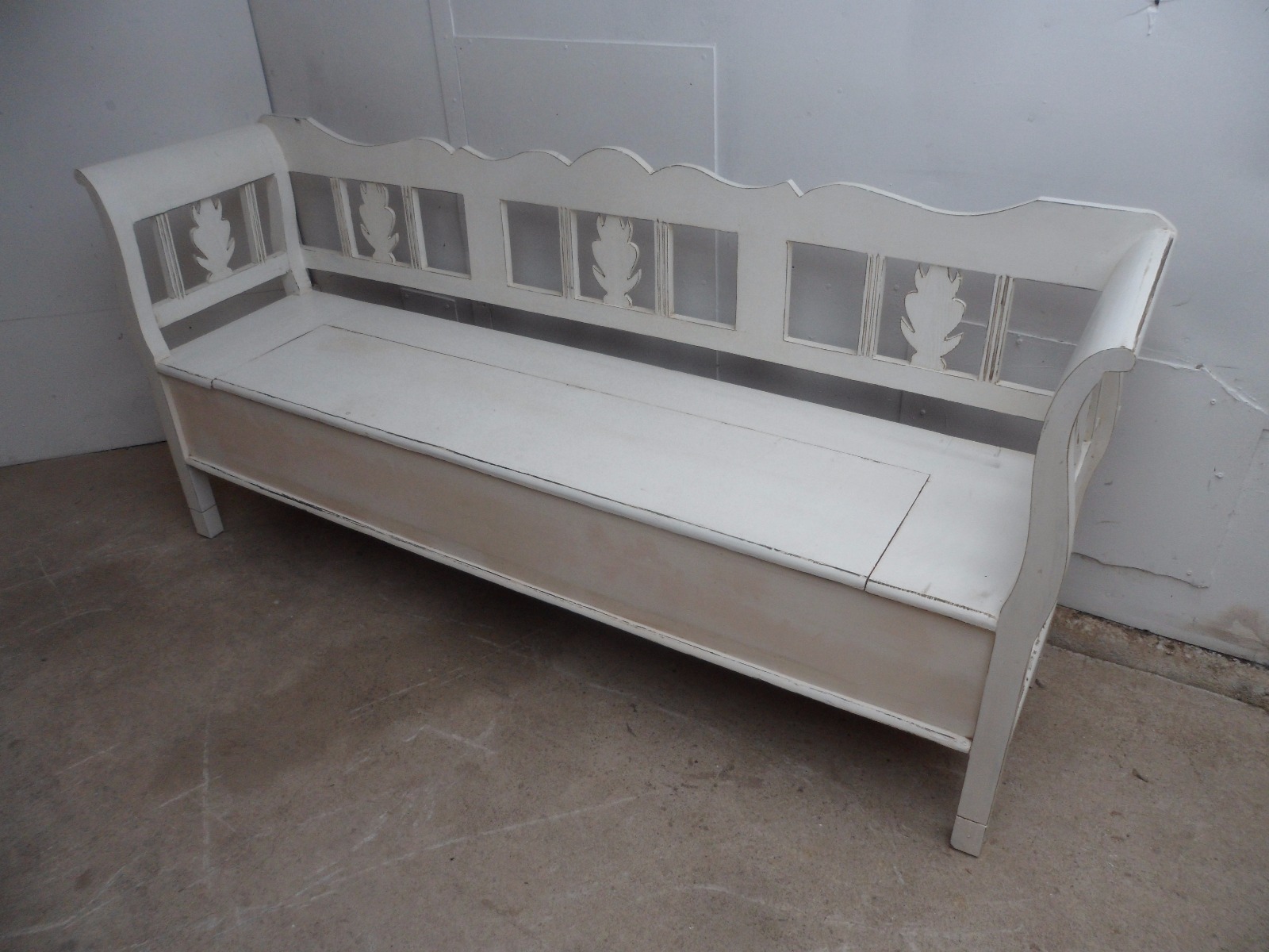 Large 3/4 Seater Pine Painted White Shabby Chic Box Settle / Bench c.1920