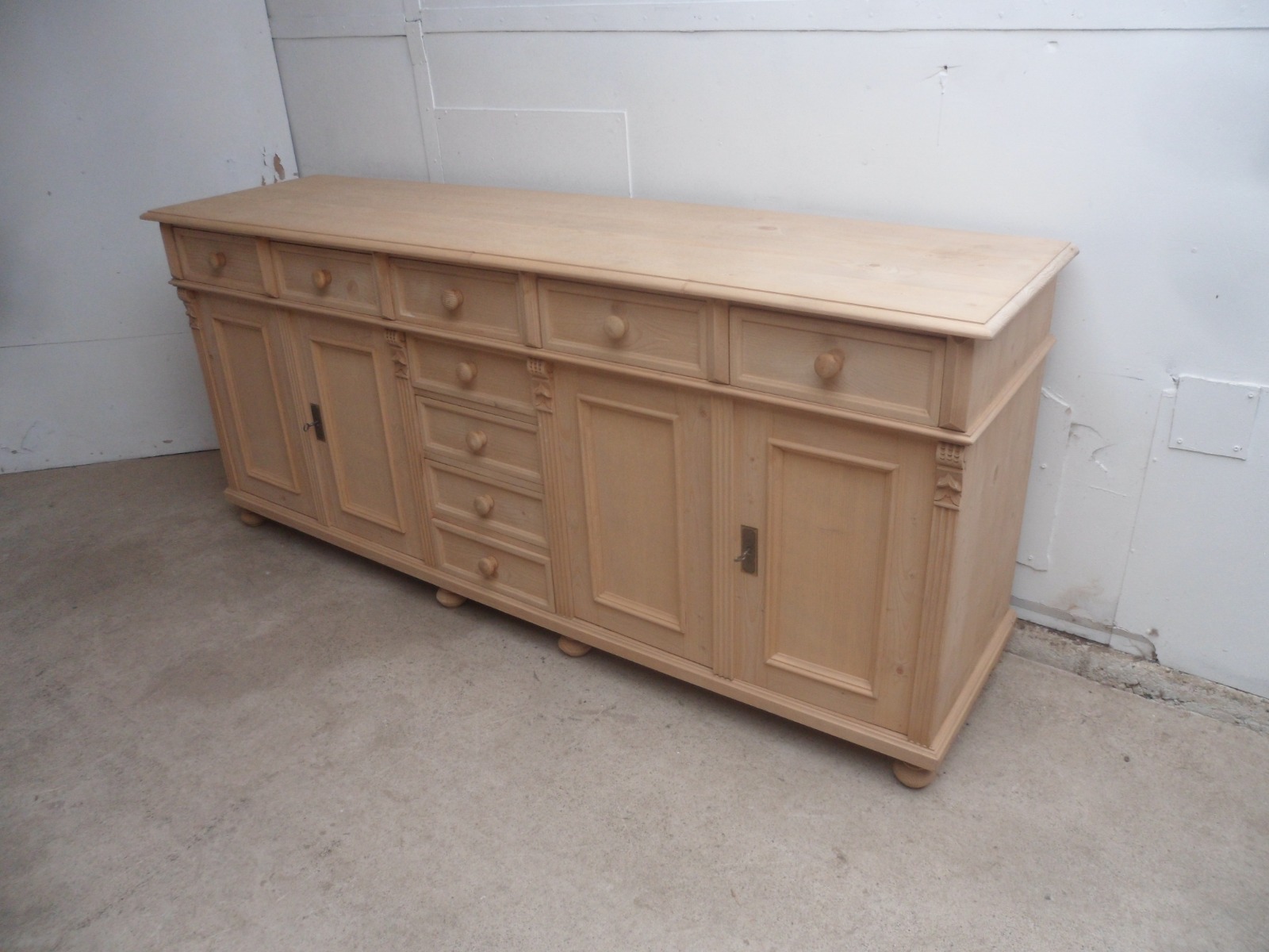 Large 4 Door 9 Drawer Reclaimed Pine Dresser Base / TV Stand to wax / paint