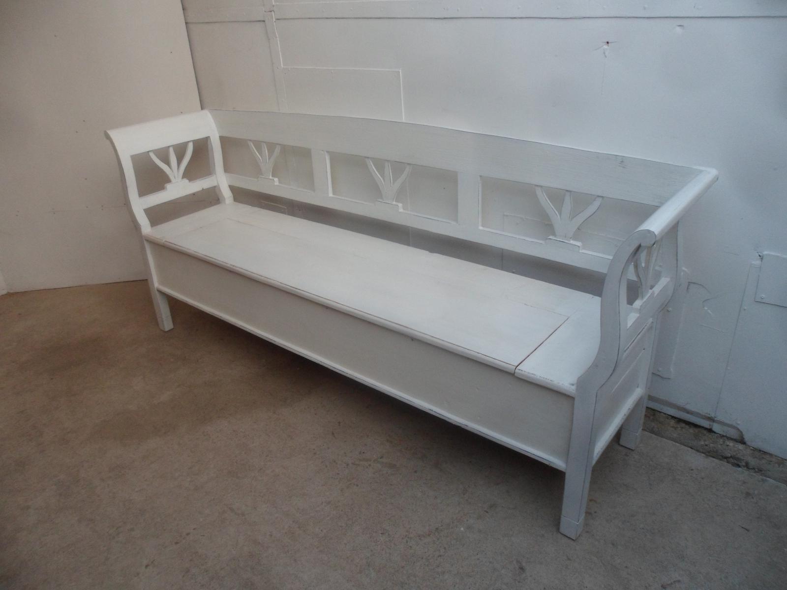 Large 4 Seater Painted White Tulip Antique Pine Kitchen/Hall Box Settle / Bench