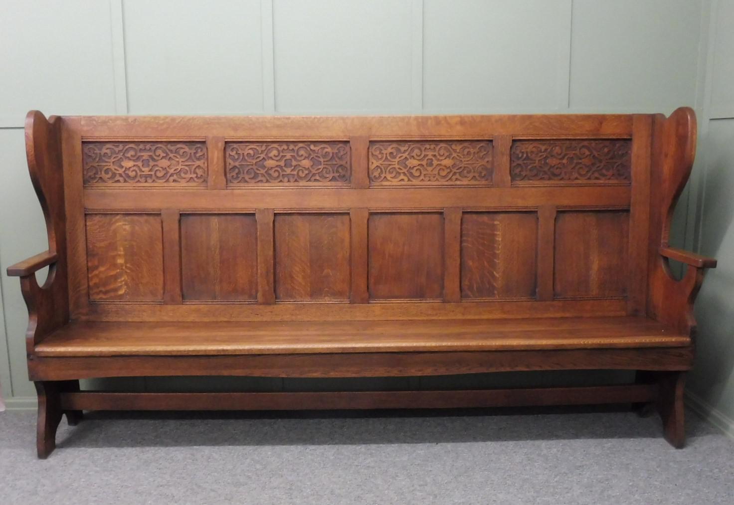 Large 8ft 3 Inch Carved Oak Hall Bench