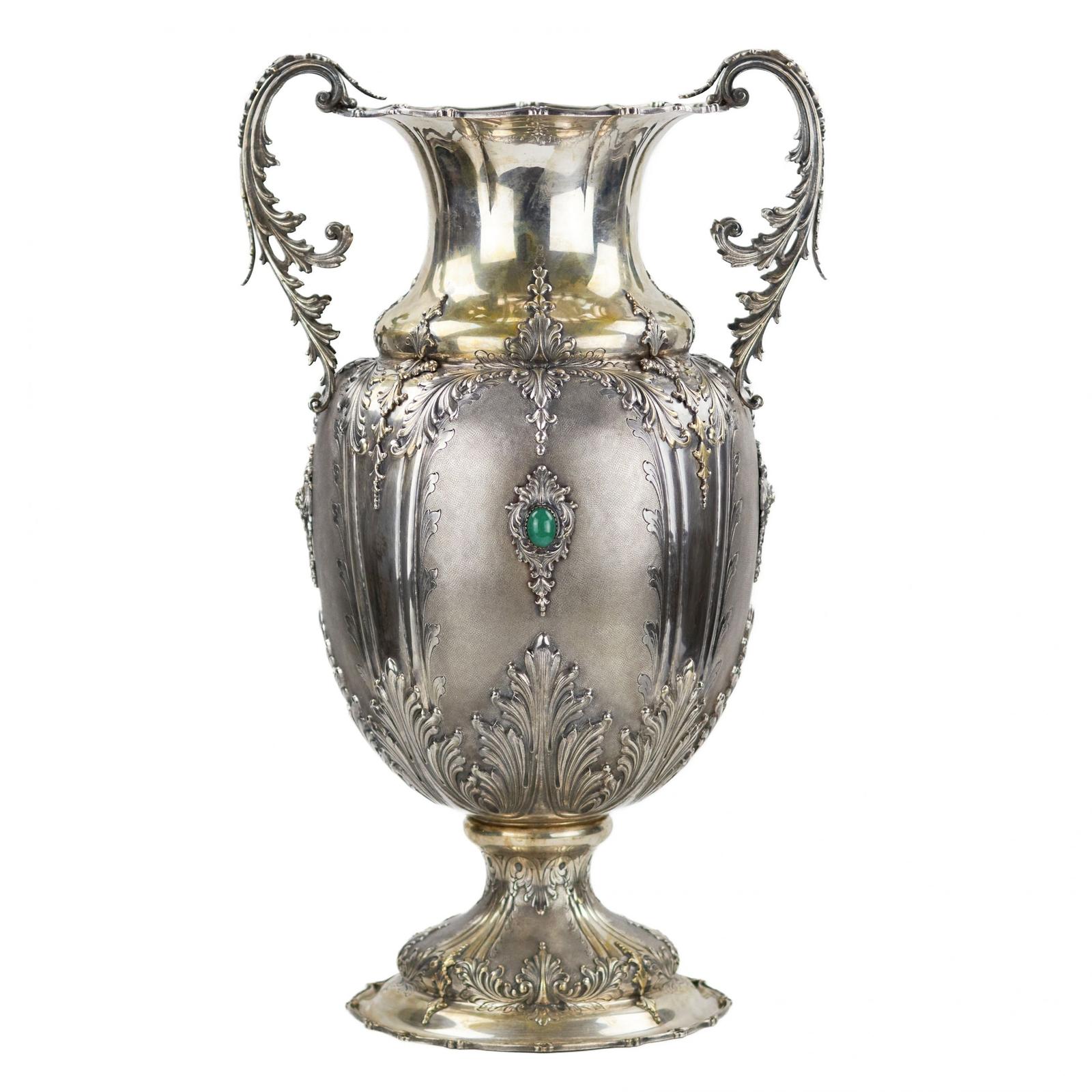 Large, amphora-shaped, silver vase. Italy. 20th century.