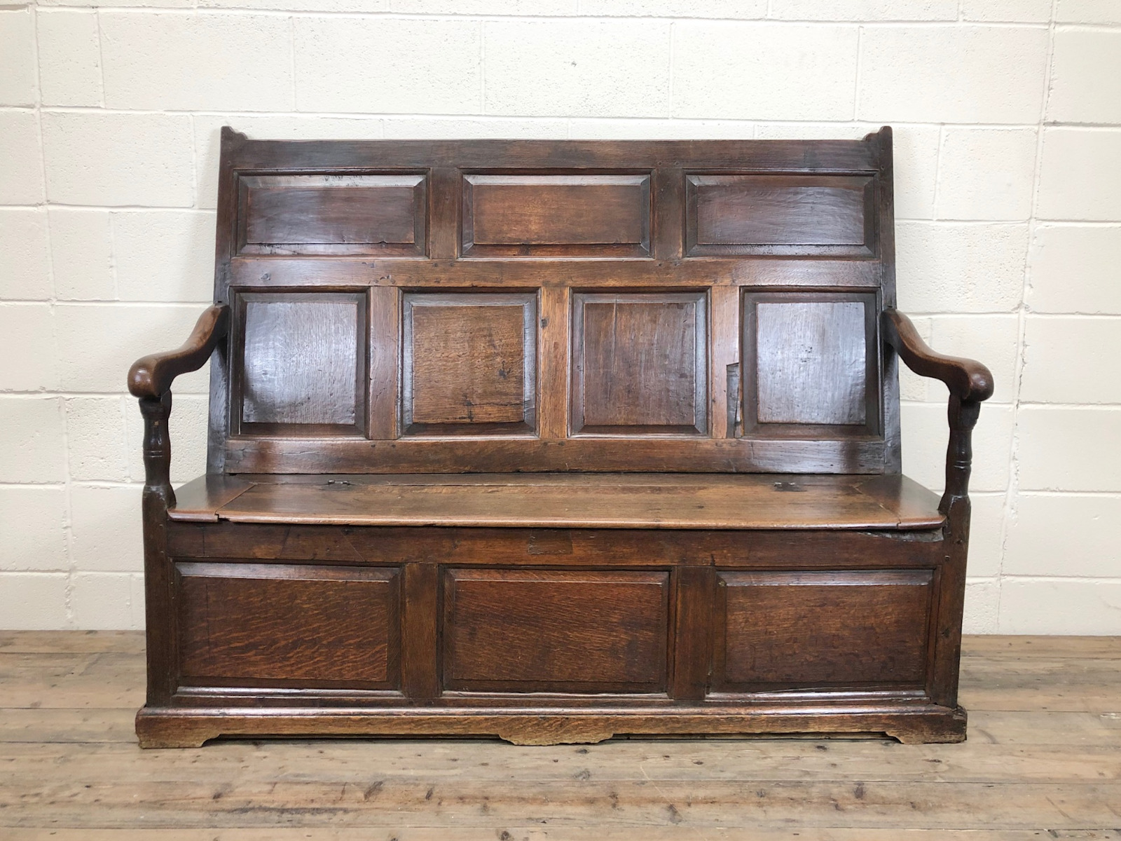 Large Antique 18th Century Oak Panel Back Settle Bench (1 of 23)