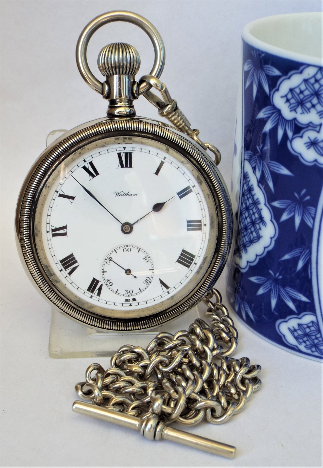 Large Antique 1917 Waltham Pocket Watch & Chain