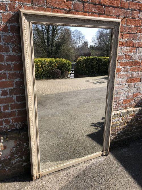 Large Antique 19th Century French Carved Wood And Gesso Plain Painted Mirror