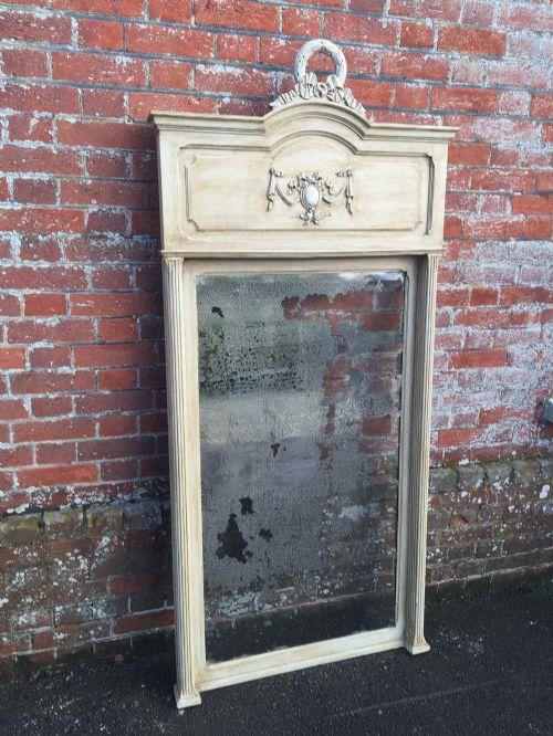 Large Antique 19th Century French Carved Wood Painted Mirror