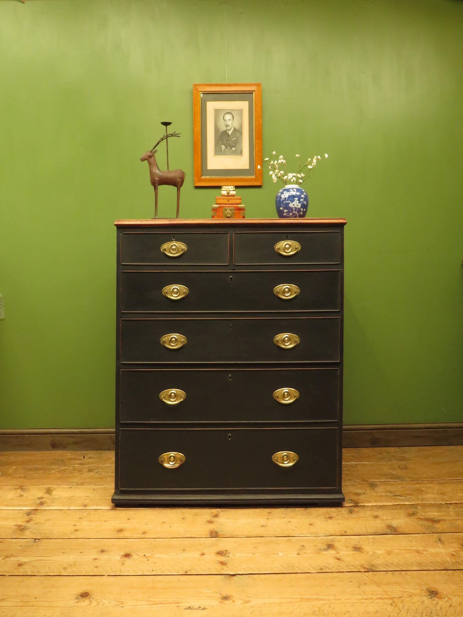 Large Antique Black Chest of Drawers with Wooden Top