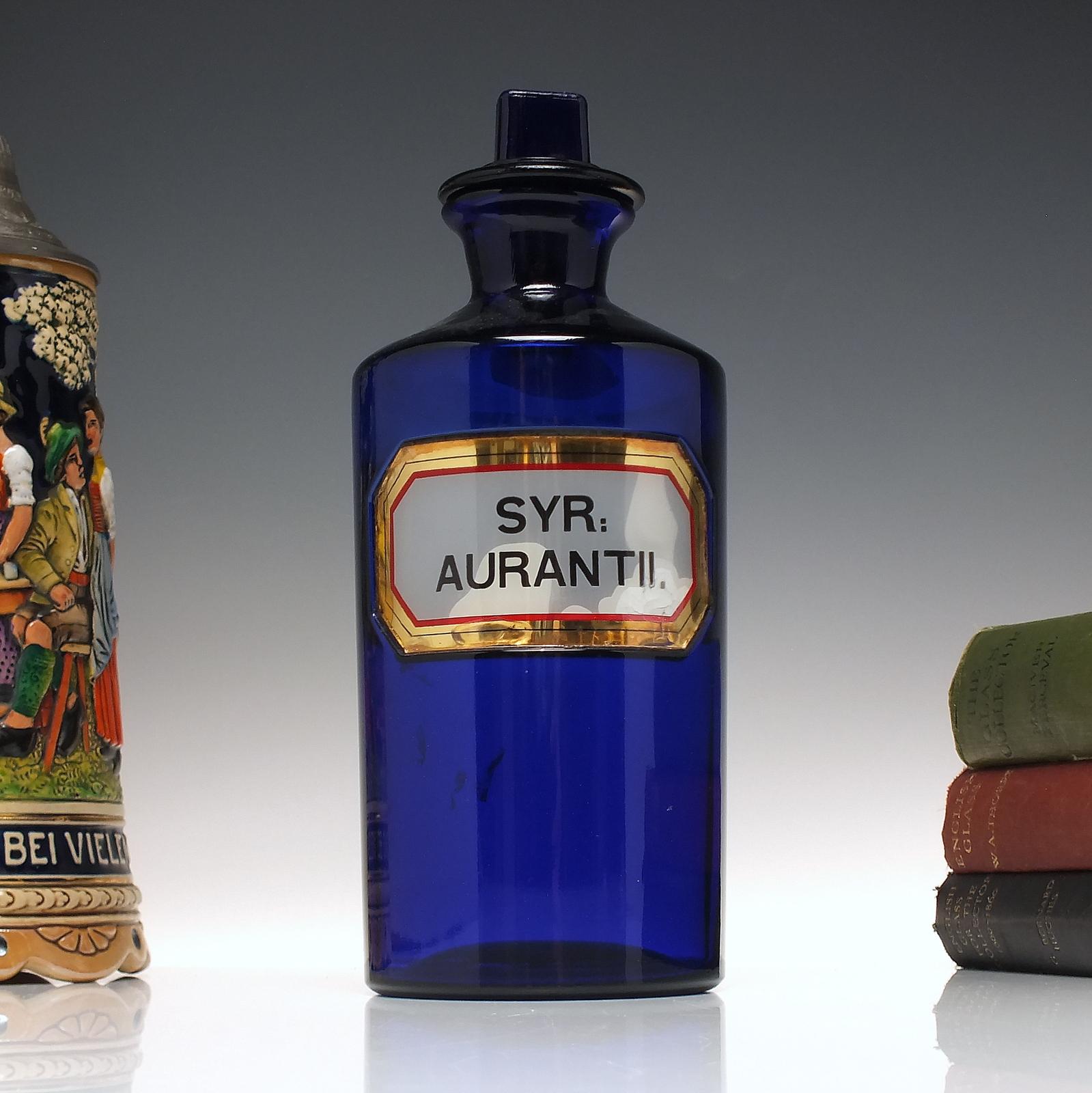 Large Antique Blue Glass Chemist Apothecary Bottle c.1920
