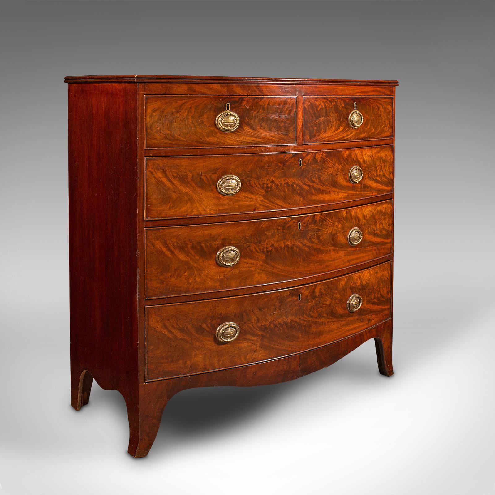 Large Antique Bow Front Chest of Drawers, English, Tallboy, Georgian, Circa 1780