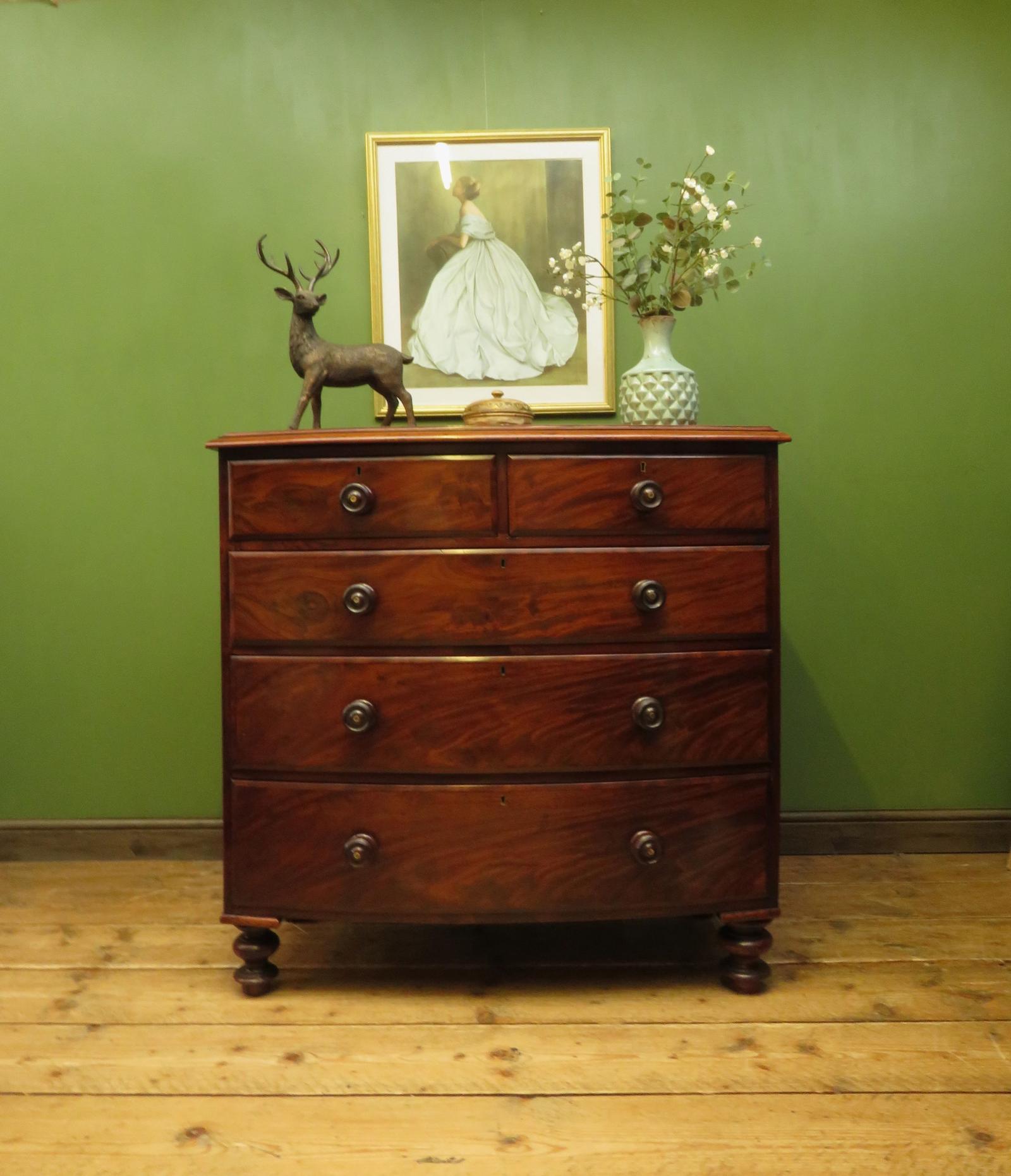 Large Antique Bow Front Mahogany Chest of Drawers