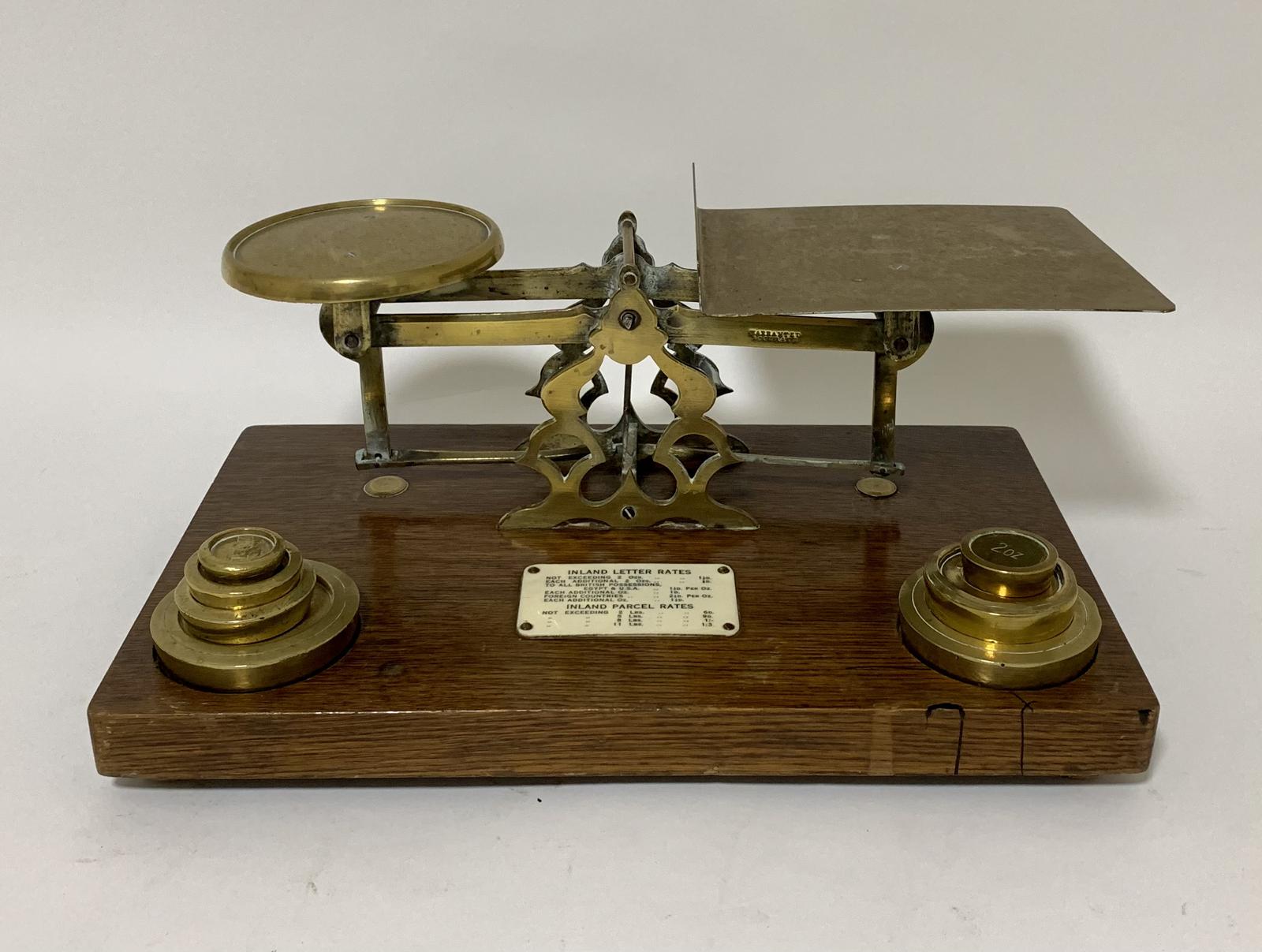 Large Antique Brass Postal Letter Scales with Weights