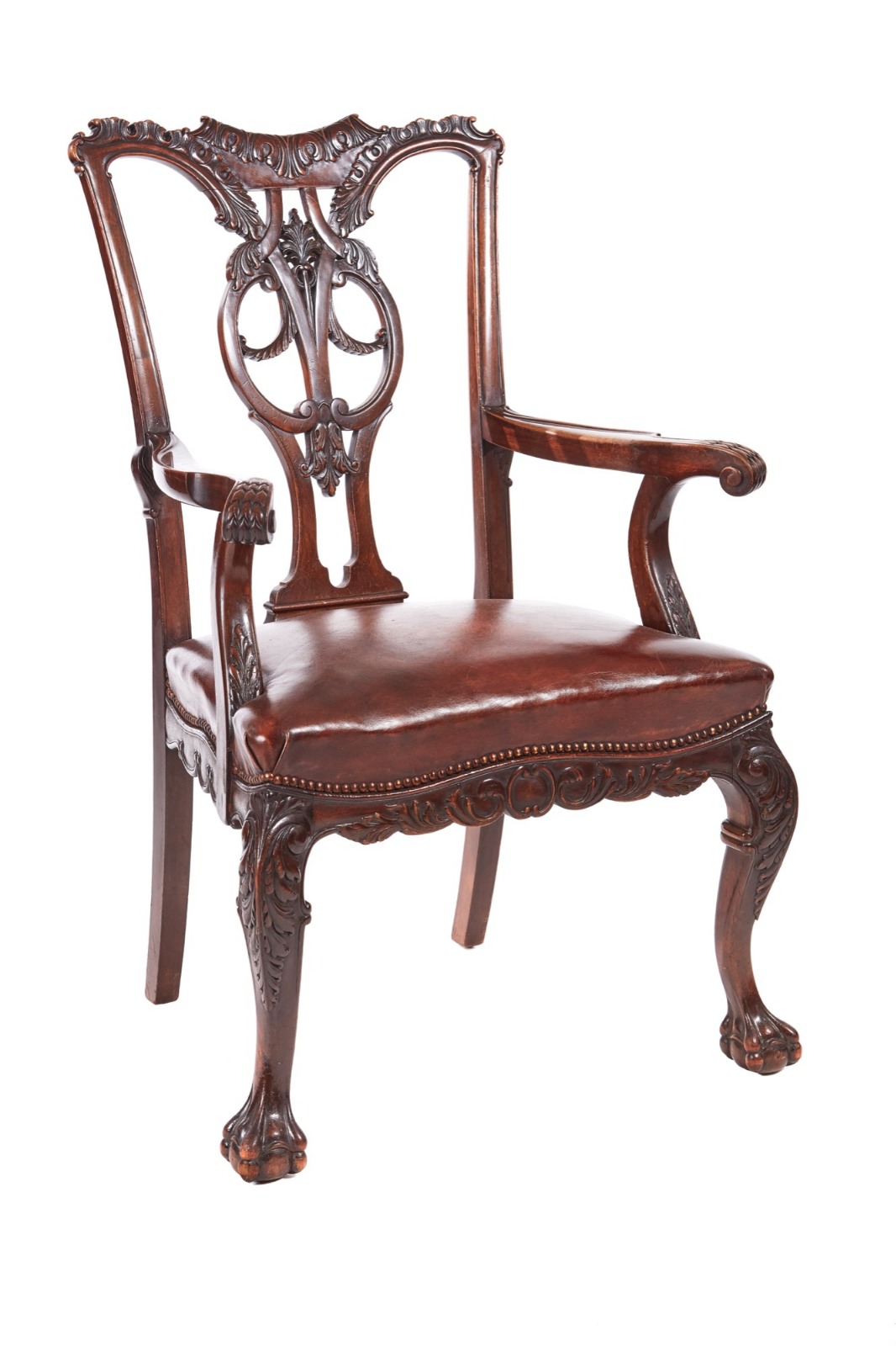 Large Antique Carved Mahogany Claw & Ball Elbow / Desk Chair