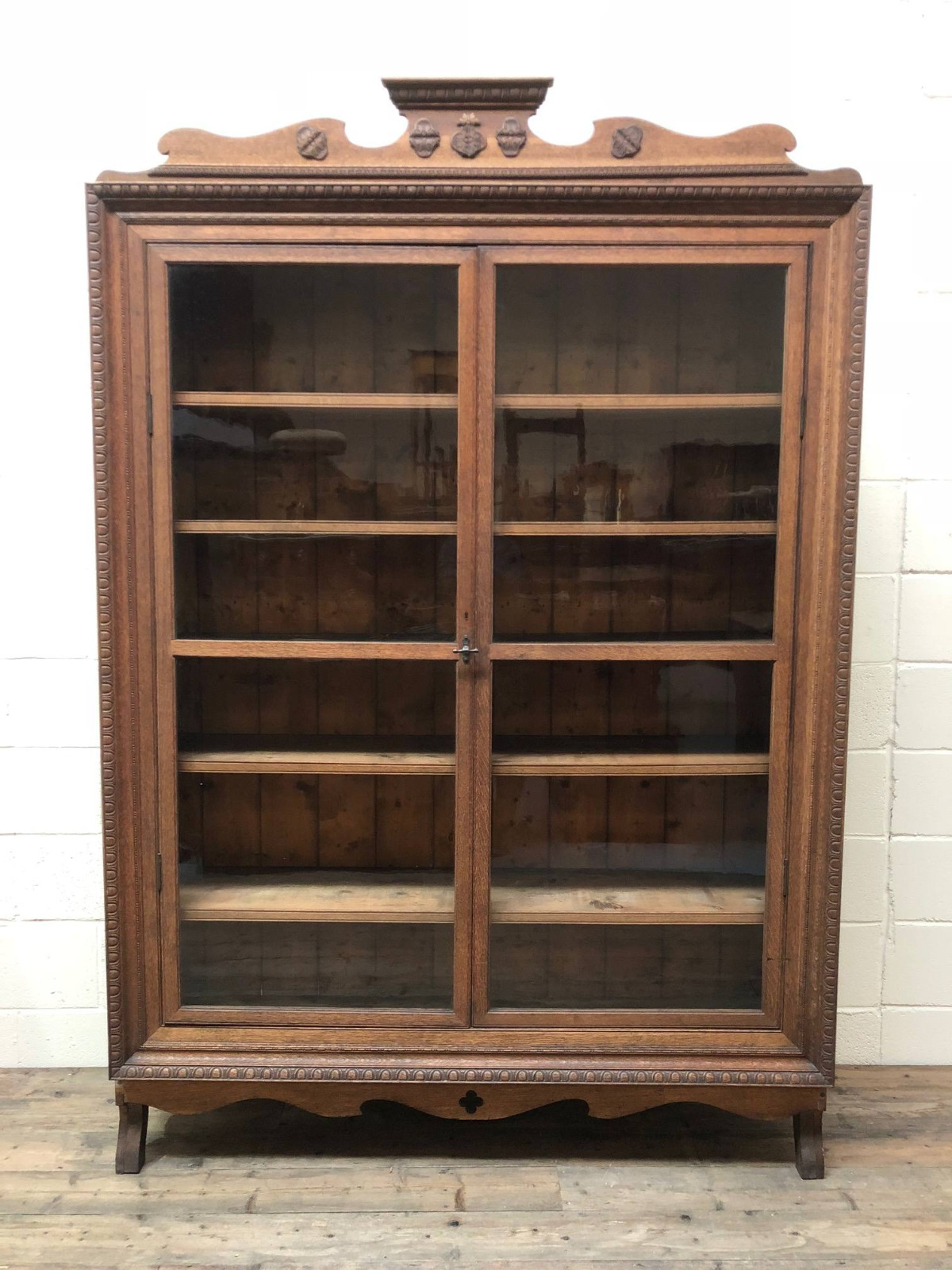 Large Antique Carved Oak Glazed Bookcase (1 of 7)