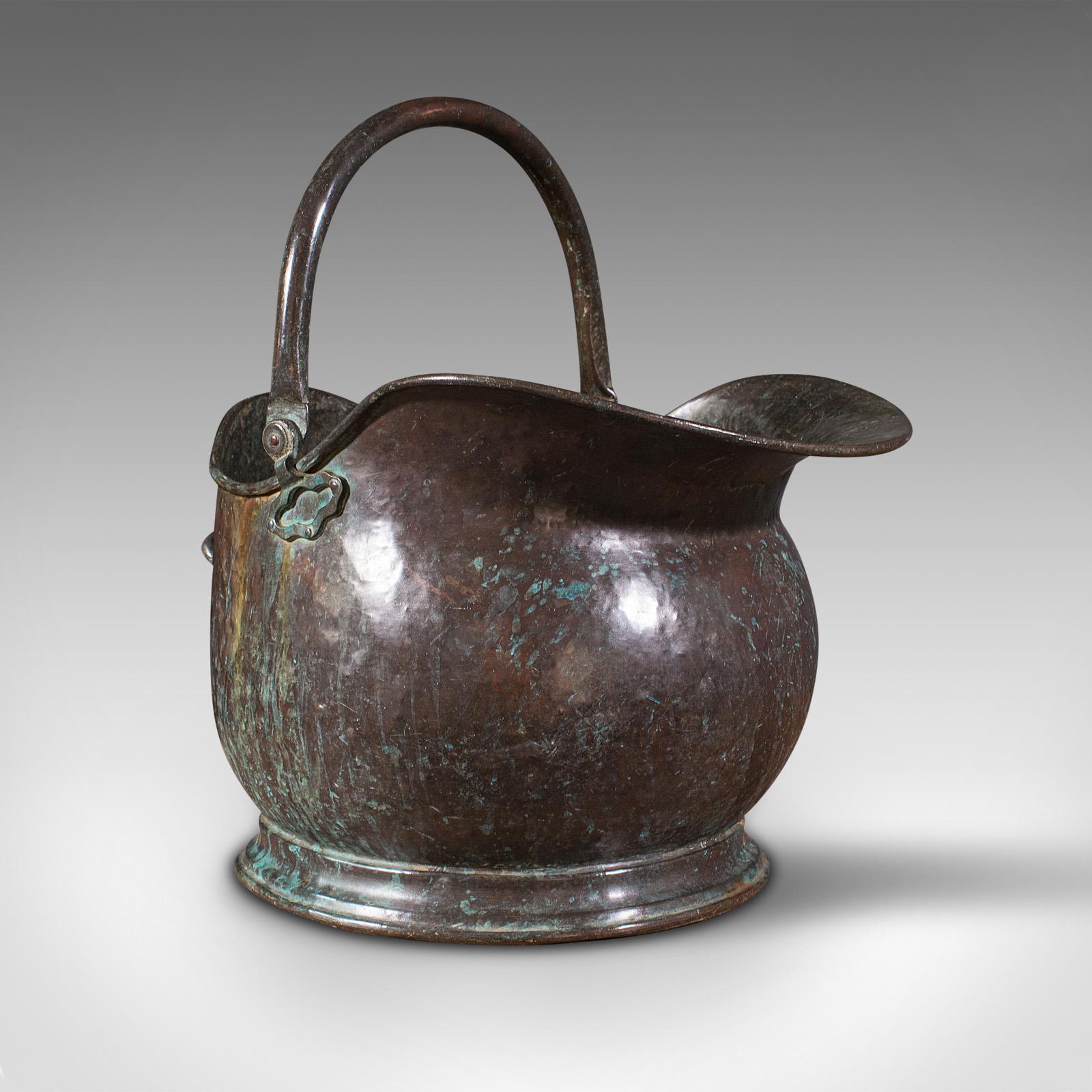 Large Antique Coal Bucket, English, Weathered Copper, Fireside Scuttle, Georgian