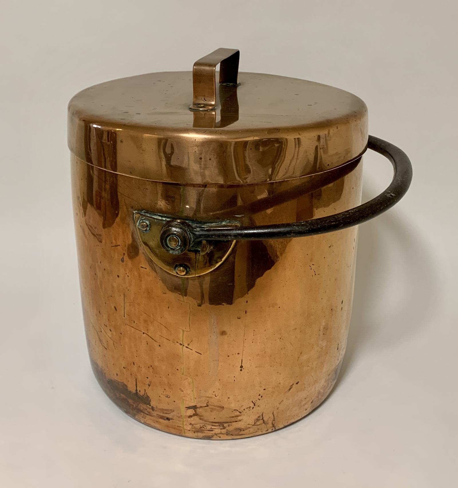 Large Antique Copper Cooking Pot with Lid