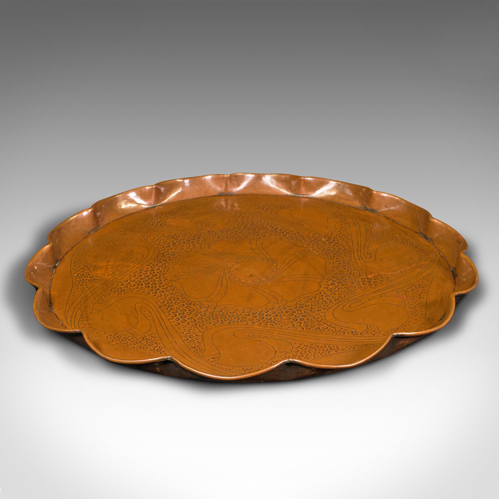 Large Antique Cornish Serving Tray, English, Copper, Art Nouveau