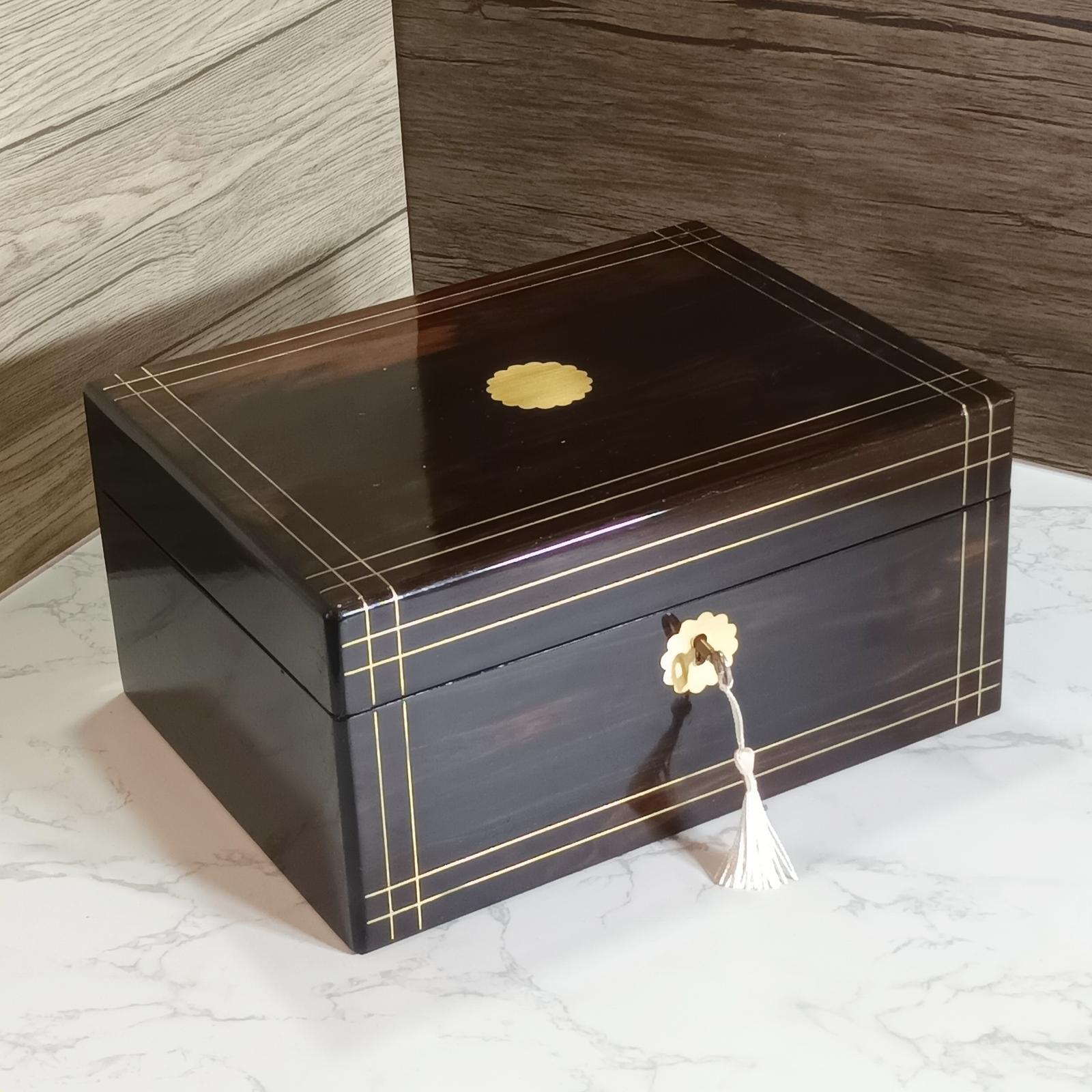 Large Antique Coromandel & Brass Inlaid Jewellery Box