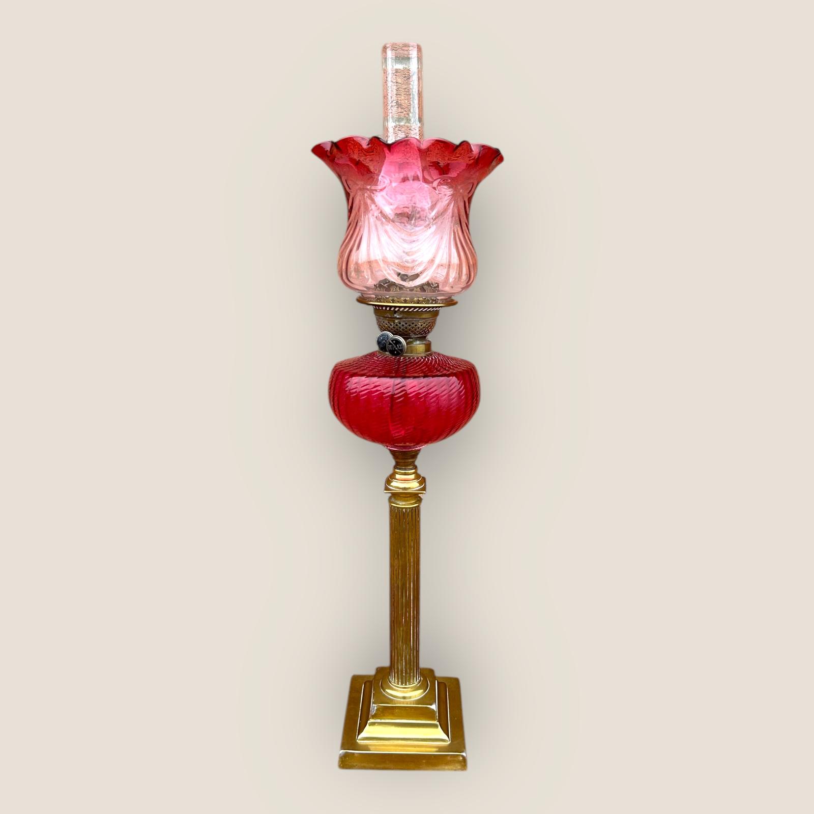 Large Antique Cranberry Brass Oil Lamp (1 of 15)