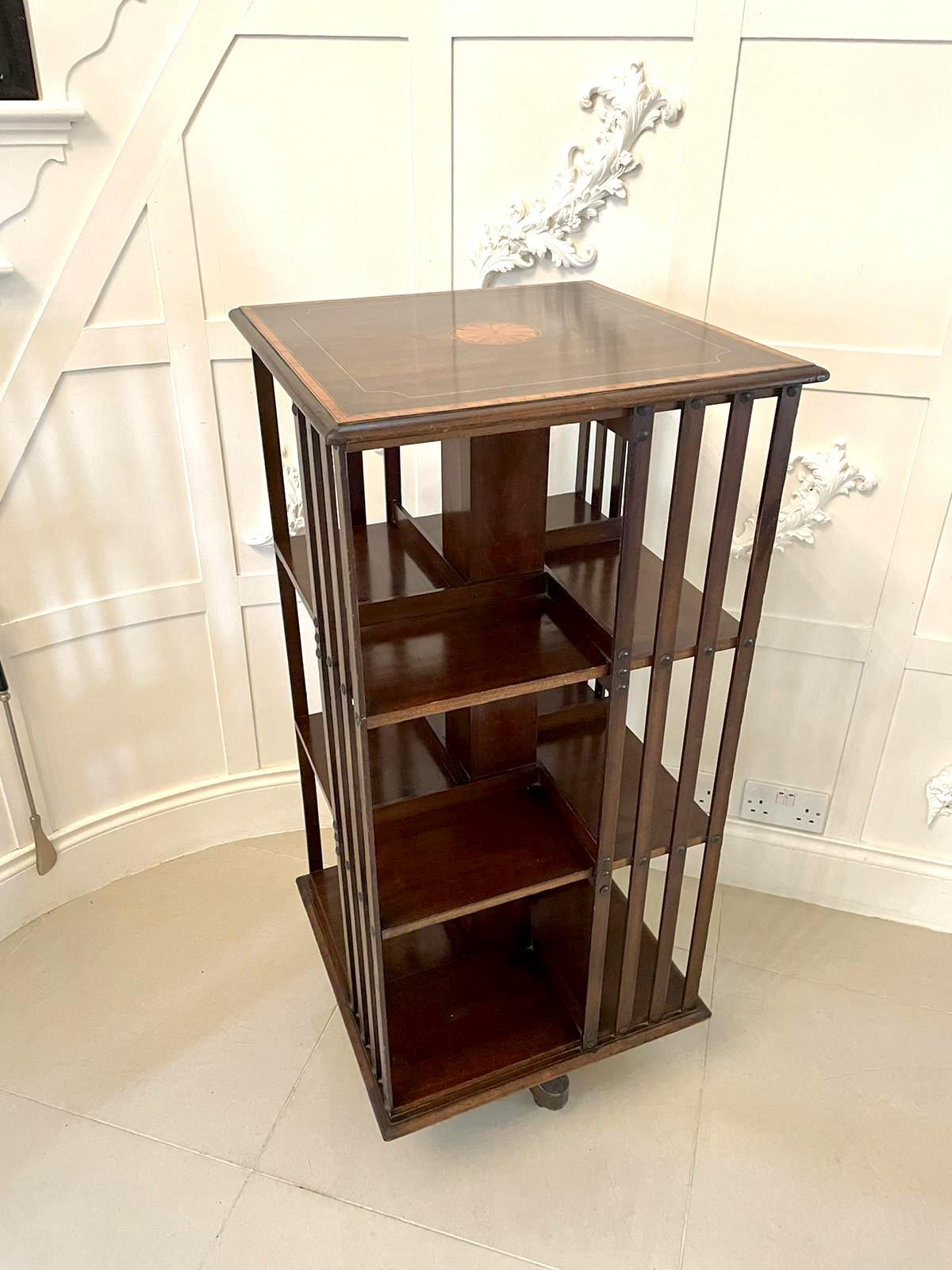 Large Antique Edwardian Inlaid Mahogany Revolving Bookcase