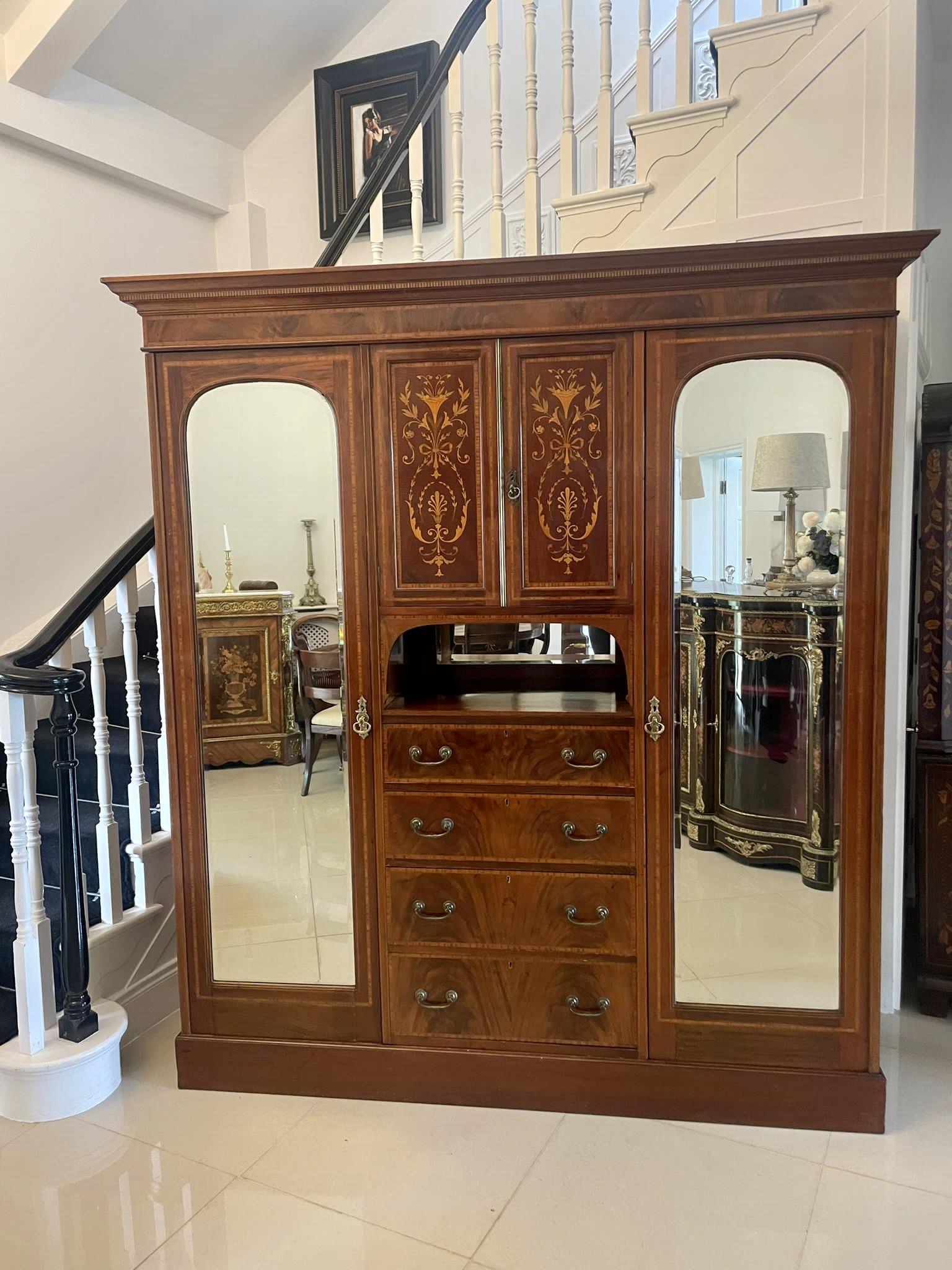 Large Antique Edwardian Quality Mahogany Marquetry Inlaid Wardrobe