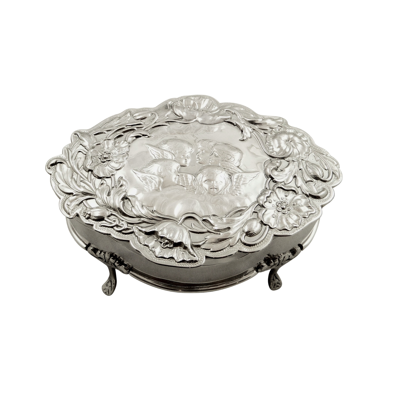 Large Antique Edwardian Sterling Silver 'Angels' Trinket Box 1902